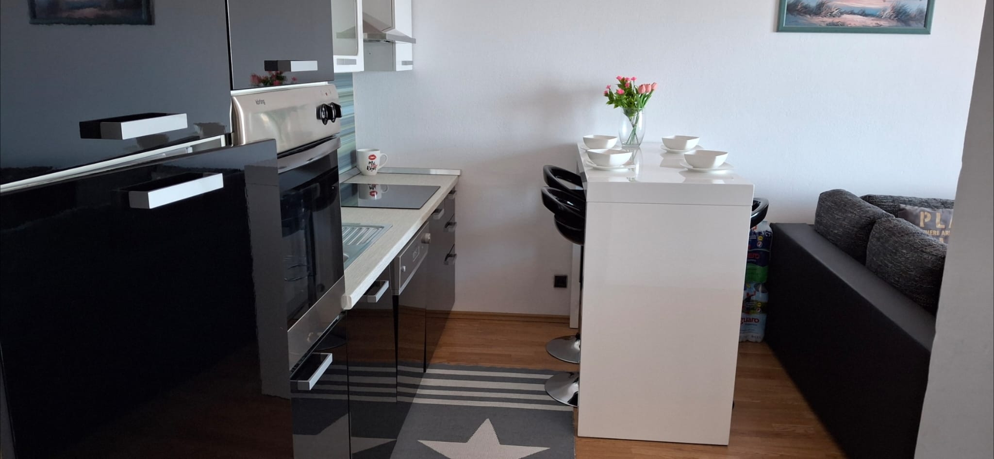 Byt se nachází v bezprostřední blízkosti moře a centra města, ale zároveň je dostatečně daleko od hlavní silnice a letního městského ruchu, což ho činí ideálním místem pro klidný pobyt, ale i pro turistický pronájem. Parkování je zajištěno v budově.