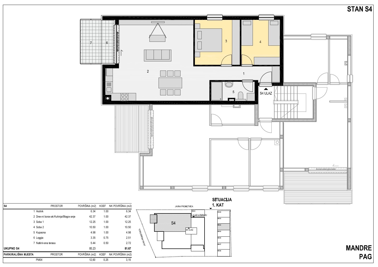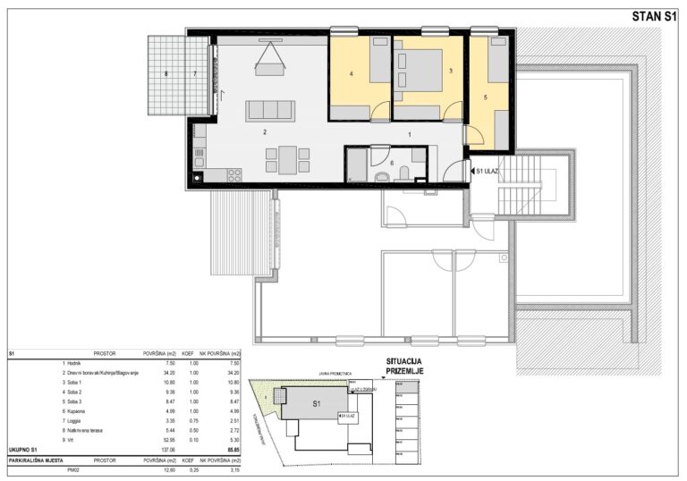 Apartmán č. S4 – 3kk, 1. patro, 82 m2, 497.370 €