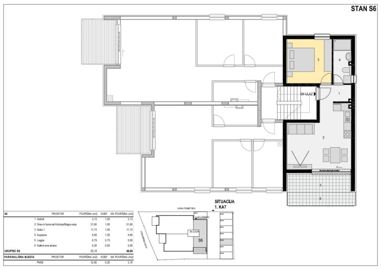 Apartmán č. S6 – 2kk, 1. patro, 49 m2, 288.156 €