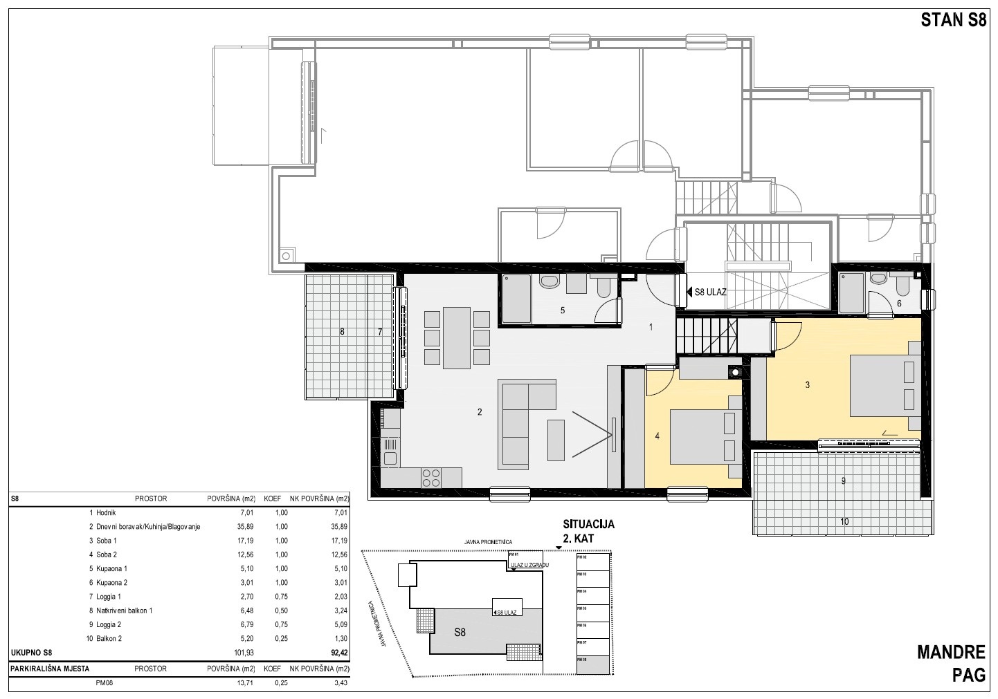 Apartmán č. S8 – 3kk, 2. patro, 93 m2, 626.100 €