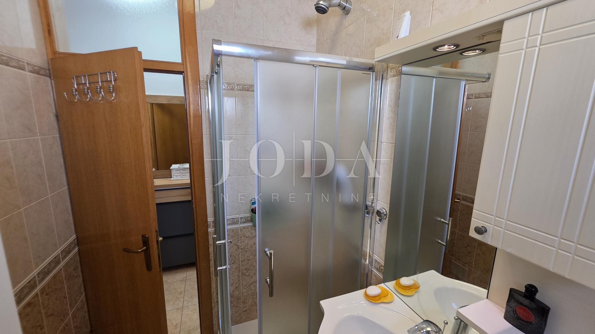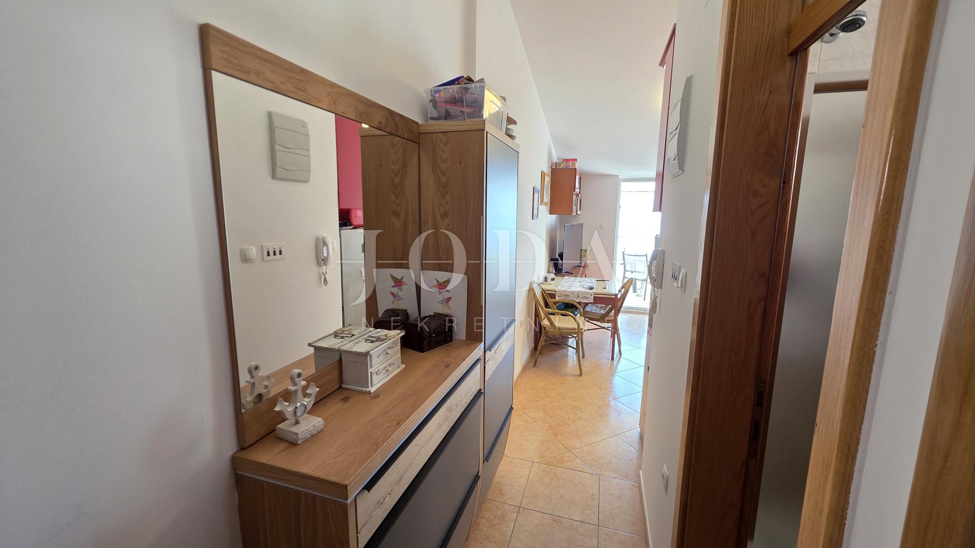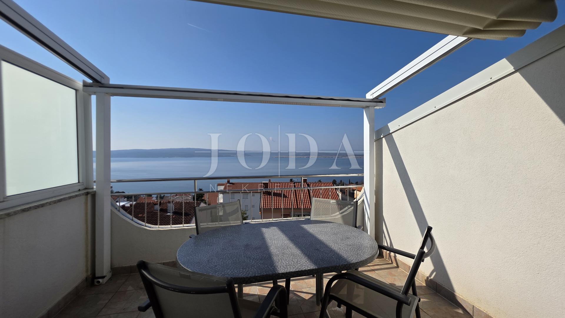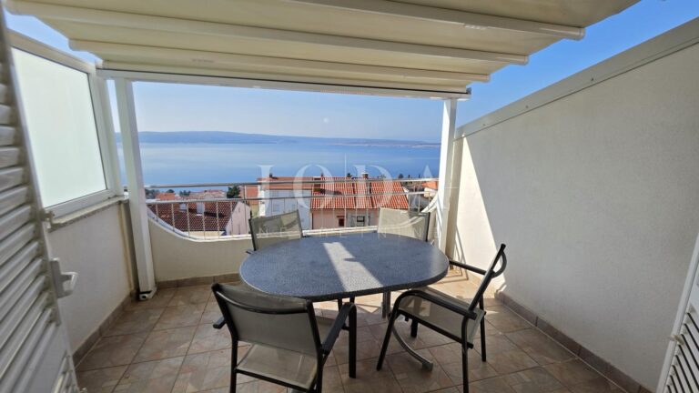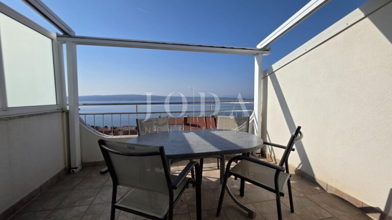 Nabízíme k prodeji byt v nejvyšším patře malého bytového domu, který se pyšní perfektní dispozicí a nádherným výhledem na moře. Jedná se o ideální příležitost pro ty, kteří hledají komfortní bydlení v blízkosti pláže s veškerým vybavením.
