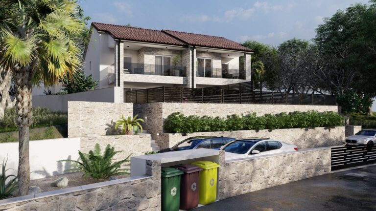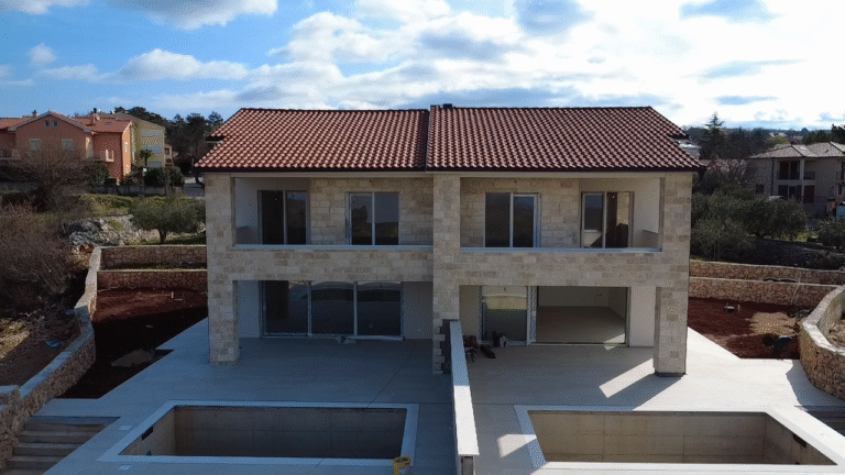 V srdci zeleně a klidu Malinské, v jedné z nejžádanějších lokalit na ostrově Krk, se nachází tato prestižní rodinná vila typu polovičního domu. Tato elegantní nemovitost nabízí perfektní kombinaci moderní architektury, špičkové konstrukce a idylického středomořského prostředí, ideální pro relaxaci a užívání si soukromí.