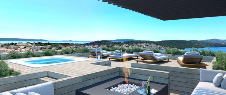 Kromě vnitřního prostoru nabízí apartmán i řadu atraktivních venkovních prvků, které umocňují zážitek z bydlení: