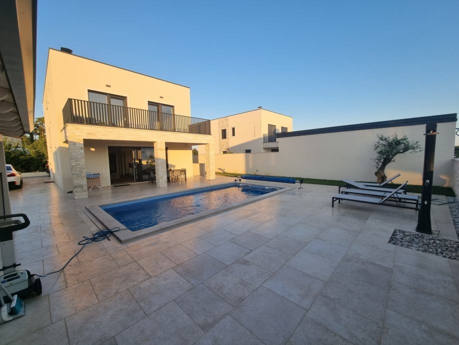 V klidné části Savudrije, pouhých 700 metrů od moře a krásných pláží, se nachází plně vybavená a moderně zařízená vila s bazénem o rozloze 194 m², situovaná na oploceném pozemku o rozloze 650 m².