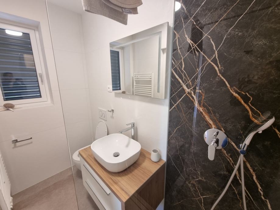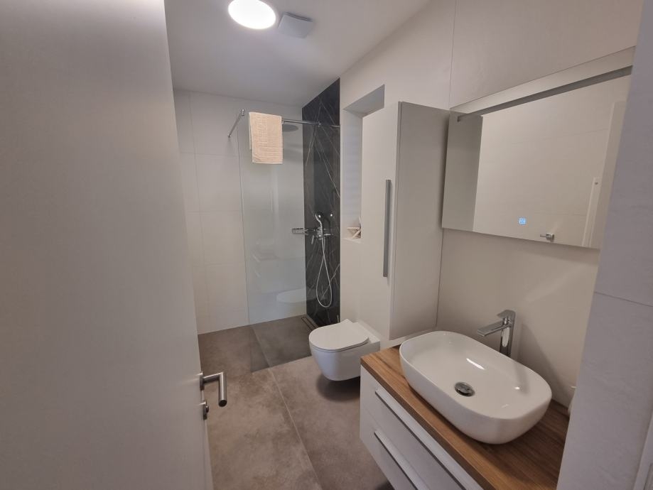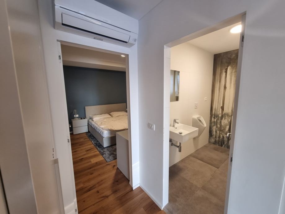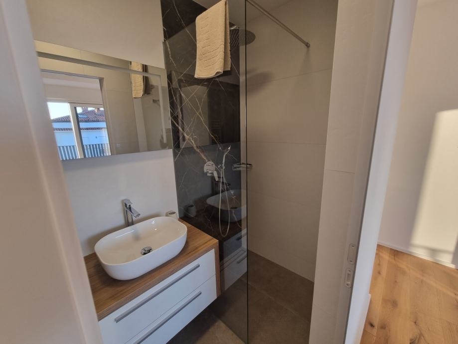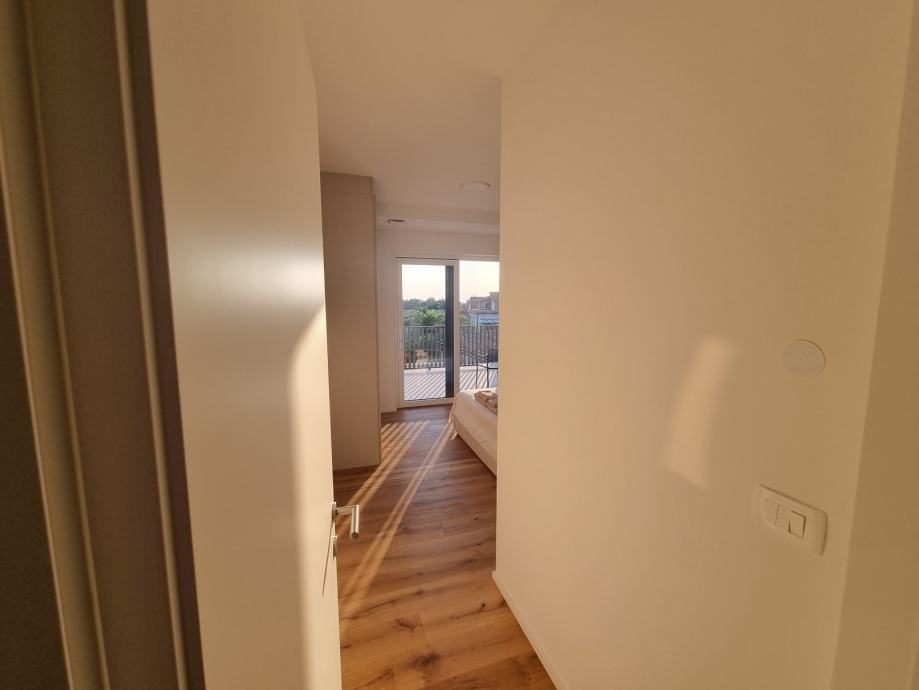 - Dva pokoje mají přístup na prostornou terasu (21,60 m²) s panoramatickým výhledem na moře a olivové háje