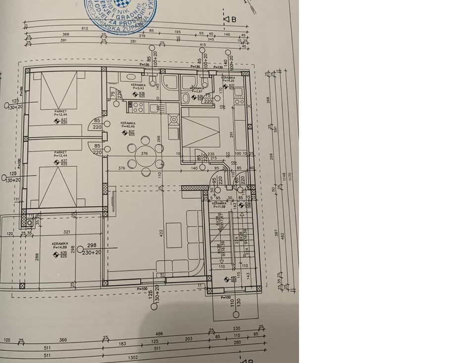 - Byt: 2 ložnice, obývací pokoj s kuchyní a jídelnou, koupelna, velká terasa