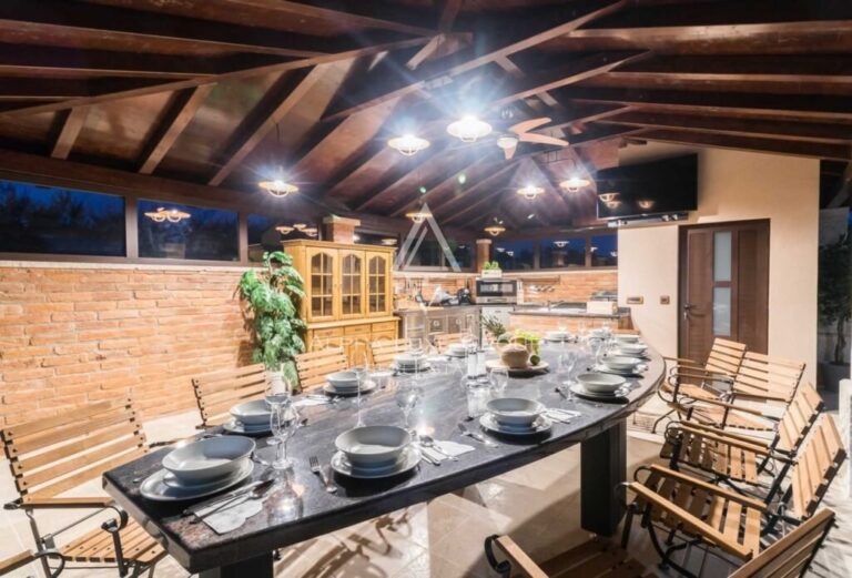 Pula, přímořské město na cípu chorvatského poloostrova Istrie, je známé svým chráněným přístavem, dlouhým pobřežím a římskými ruinami. Pula, osídlená od pravěku a ceněná pro svou strategickou polohu, byla opakovaně okupována, ničena a přestavována. Vila je 6 km od moře, 3 km od dálnice a jen 7 km od centra Puly, o rozloze 600 m2 na prostorném pozemku 1780 m2. Součástí suterénu je sklep, chodba, sklad a toaleta. Vedle vily je byt s vlastním vchodem sestávající z chodby, kuchyně s obývacím pokojem, ložnice, koupelny a apartmánu s krytou terasou. V přízemí vily se nachází hala, kuchyň s jídelnou, velký obývací pokoj s velkým krbem na dřevo a tři ložnice, každá s koupelnou. V přízemí jsou dvě kryté terasy. První patro vily tvoří hala, kuchyň s jídelnou a velkým obývacím pokojem, tři velké ložnice, dvě koupelny, místnost se saunou a vířivkou a místnost s cvičebním náčiním. V prvním patře je balkon bez střechy. V obývacím pokoji je krb na dřevo. Ve druhém patře vily je malá kuchyňka s barem, společenská herna (šipky, kulečník), tři ložnice a dvě koupelny. ALG-2035 Robert Budimir Agent s licencom robert@Adriatic Real.com Adriatic Real.com