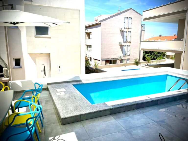 BYT E1 – NOVALJA – PŘÍZEMÍ SE ZAHRADOU, PRVNÍ A DRUHÉ PATRO SE SOUKROMÝM BAZÉNEM A VÝHLEDEM NA MOŘE – VÝHODNÁ INVESTICE