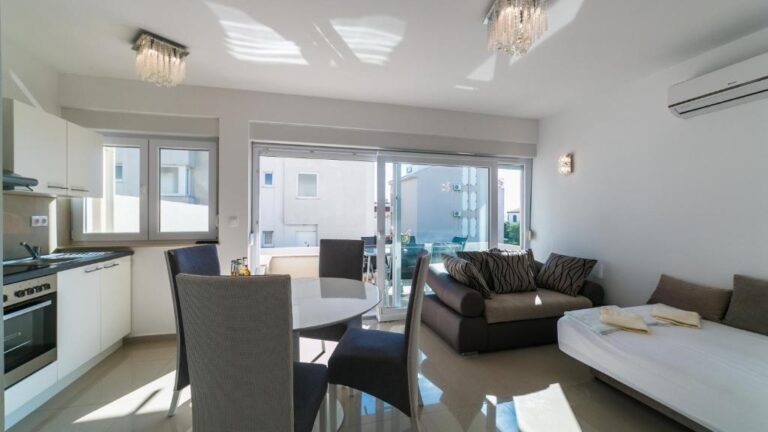Byt označený E1 se nachází v turistickém letovisku Novalja, na výborném místě, které nabízí ideální kombinaci klidu a dostupnosti veškerého dění.