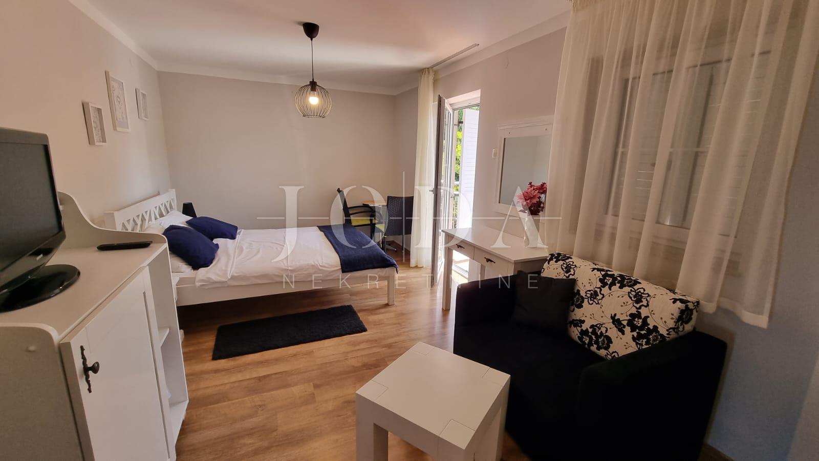 Investiční příležitost - Obytný dům se čtyřmi apartmány, bazénem a tavernou K prodeji je čtyřpatrový obytný dům nacházející se v atraktivní části Crikvenice, ideální pro turistický pronájem. Budova se skládá ze čtyř samostatných apartmánů, rozložených na čtyřech podlažích, což umožňuje flexibilní využití a přizpůsobení se různým potřebám trhu. K nemovitosti náleží navíc prostorná taverna, která může sloužit jako společný prostor pro hosty nebo být dle přání investora přeměněna na další obsah. V upravené zahradě se nachází bazén s opalovací plochou, což zajišťuje vysokou úroveň komfortu a soukromí. K dispozici je také soukromé parkoviště, což je v odvětví cestovního ruchu významnou výhodou. Vzhledem ke kvalitní poloze, panoramatickému výhledu na moře a plně vybaveným ubytovacím jednotkám představuje tato nemovitost vynikající příležitost pro investici do cestovního ruchu s potenciálem vysokého využití a stabilní návratnosti investic. Pro více informací nebo pro domluvení prohlídky nás neváhejte kontaktovat.