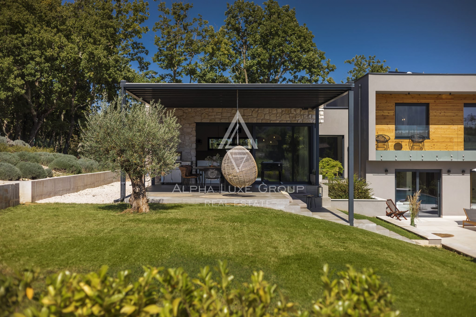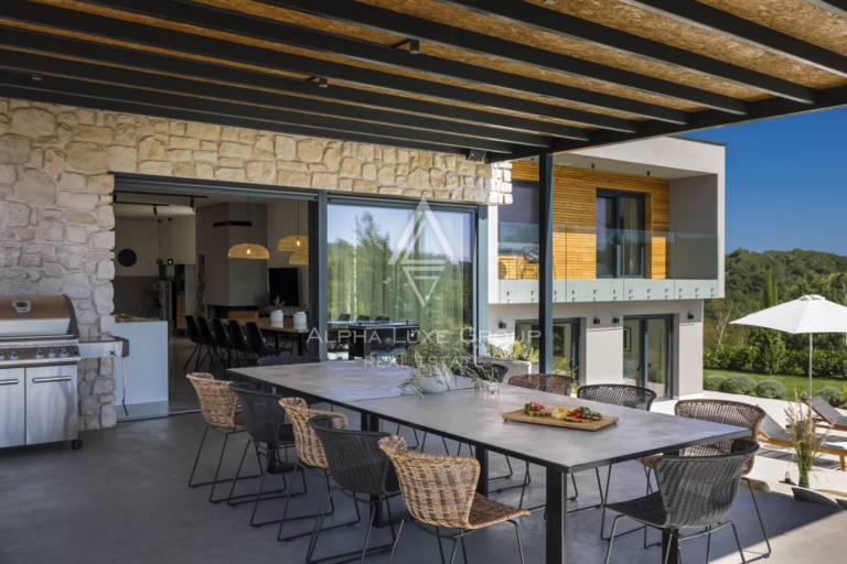 Tato výjimečná moderní vila se nachází v klidné venkovské oblasti u Buje a nabízí vytříbenou eleganci, naprosté soukromí a špičkový komfort. Umístěná na krásně upraveném pozemku o rozloze více než 5 000 m² je ideální volbou pro ty, kteří hledají luxusní rodinné bydlení nebo bezpečnou investici na istrijském trhu s prémiovými nemovitostmi.