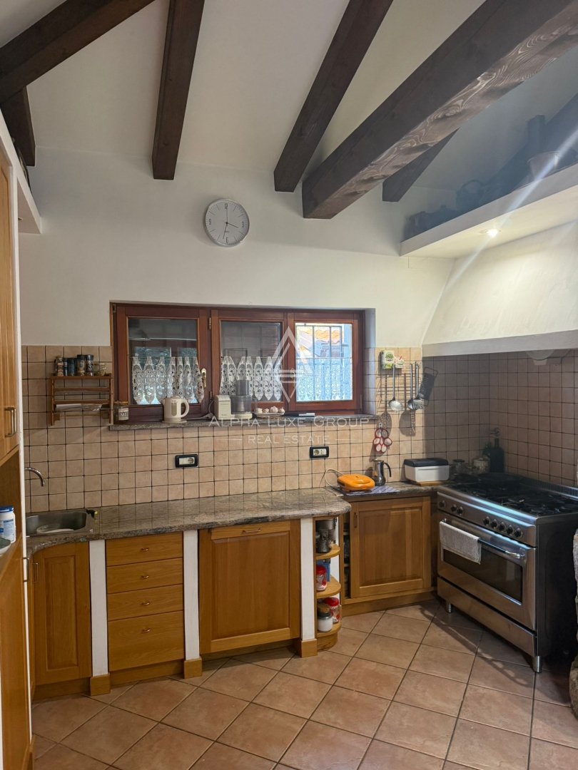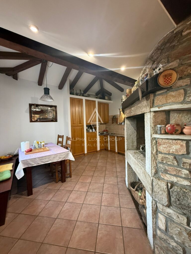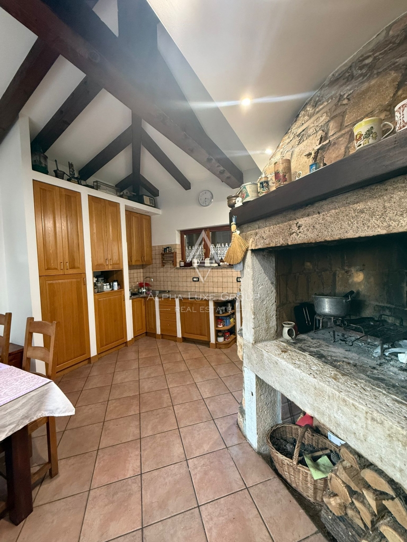 Nemovitost se prodává kompletně zařízená a je vybavena centrálním vytápěním a krbem, což zajišťuje pohodlí v každém ročním období. Interiér má praktické uspořádání určené pro každodenní život a venkovní prostor nabízí dostatek místa pro vytvoření soukromé středomořské zahrady, venkovní kuchyně nebo relaxační zóny.