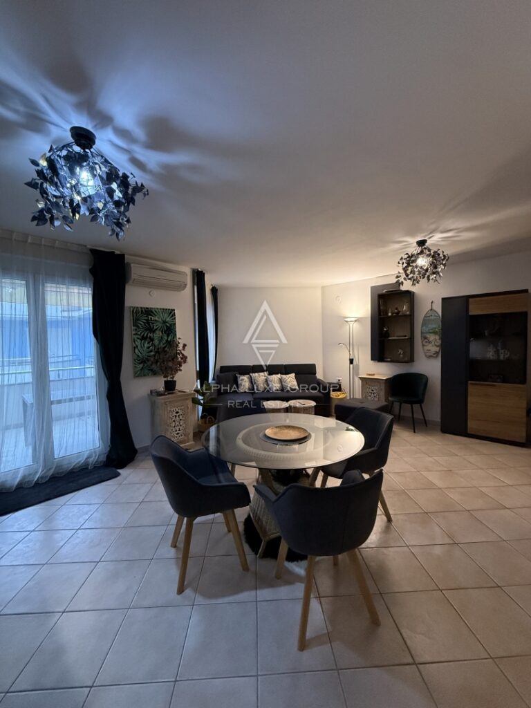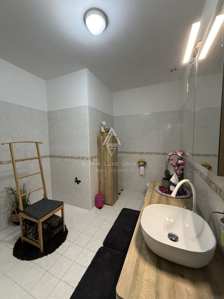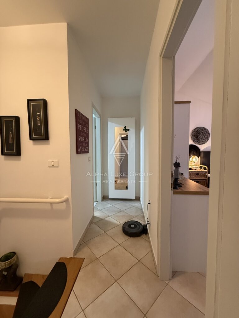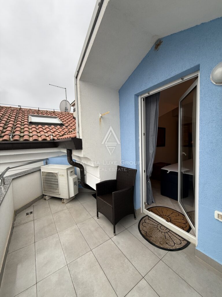 Na prodej je elegantní dvoupodlažní apartmán s otevřeným výhledem na moře z obou teras, v atraktivní lokalitě Crveni Vrh.
