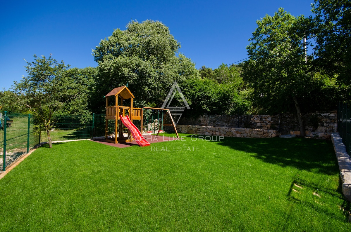 • Upravenou zahradu s dětským hřištěm o rozloze 120 m².