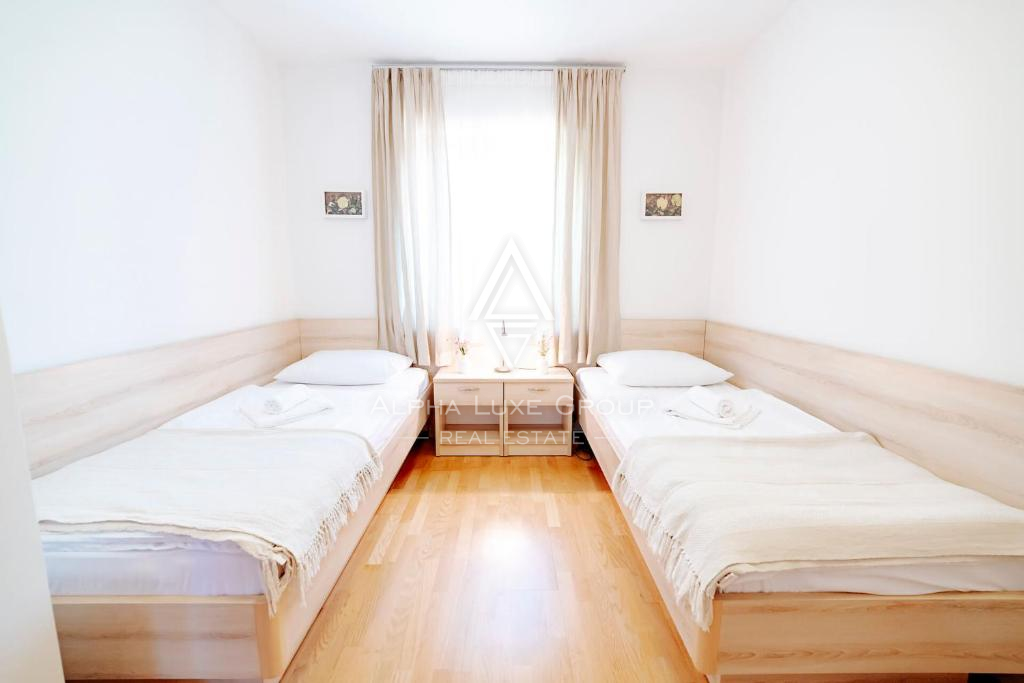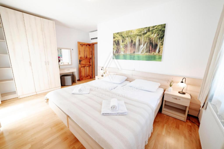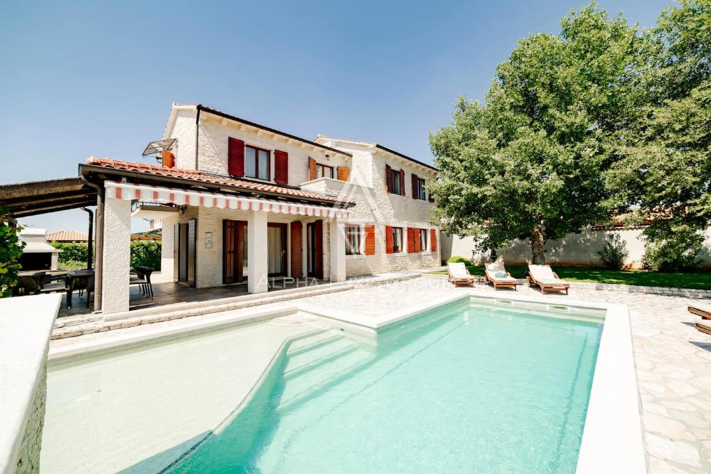 Zahrada je upravená, zcela oplocená a nabízí maximální soukromí. Součástí je také bazén se sluneční terasou, ideální pro užívání si teplého istrijského klimatu. Promyšlené dispoziční řešení a kvalitně navržené venkovní prostory vytvářejí harmonické prostředí pro celoroční bydlení i rekreaci.