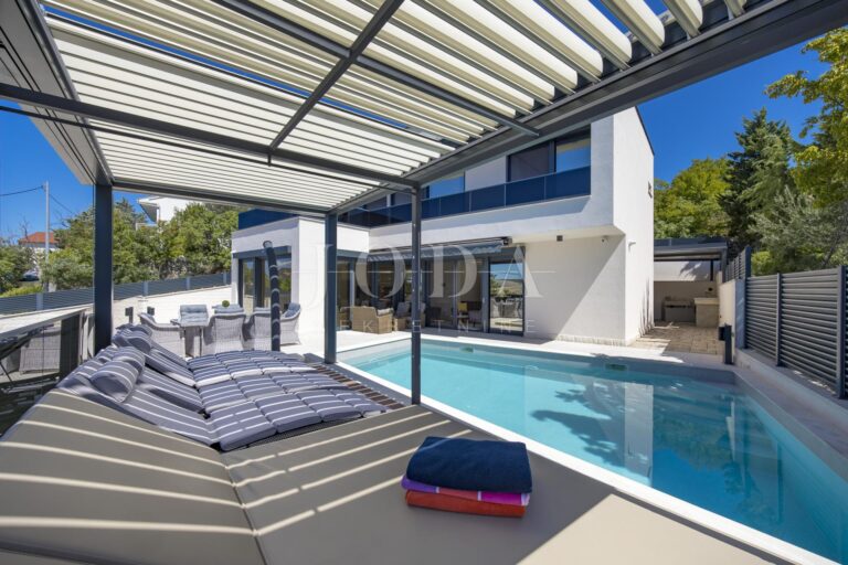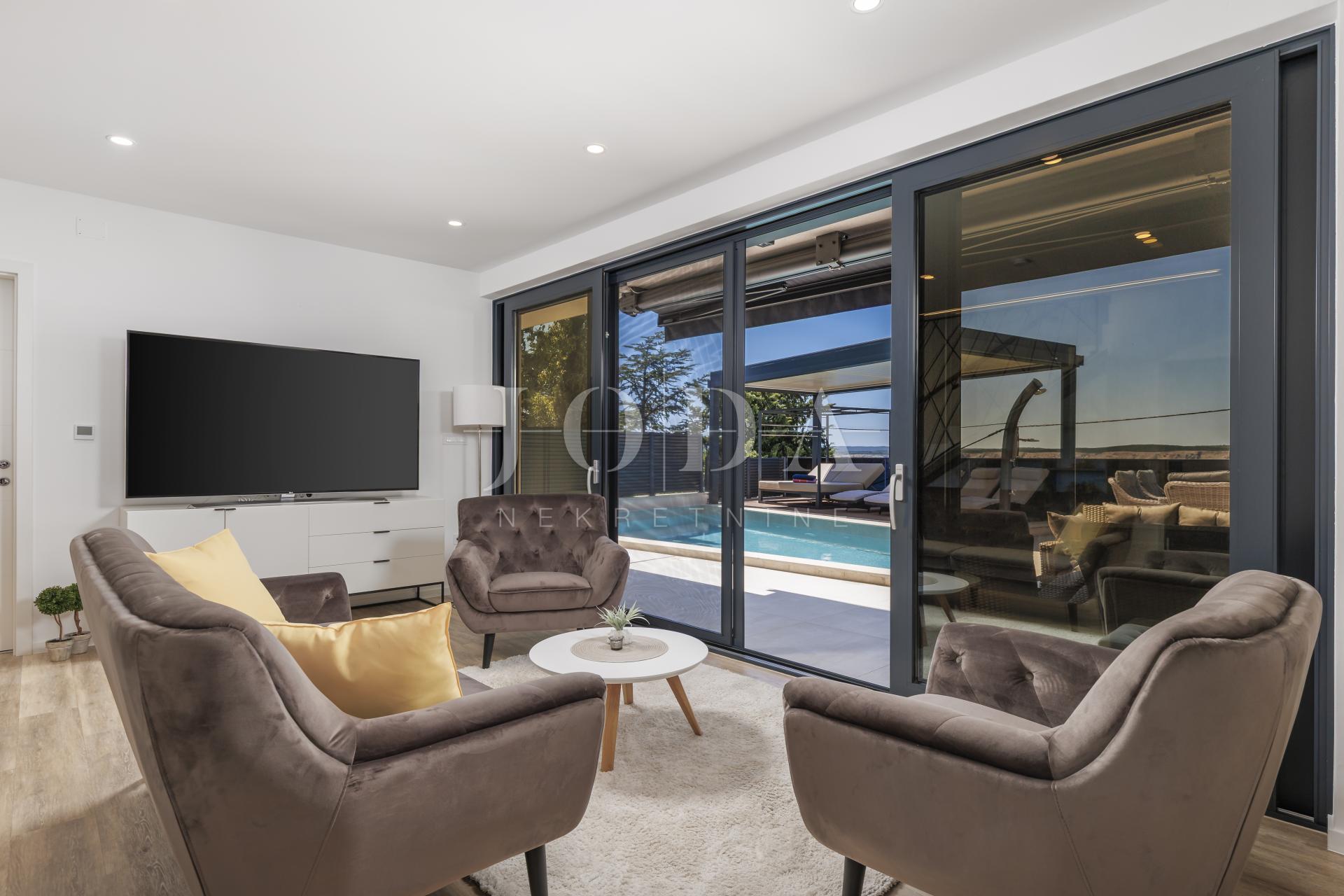 Na fantastickém místě v blízkosti pláže s nádherným výhledem je k prodeji samostatně stojící moderní dům.
