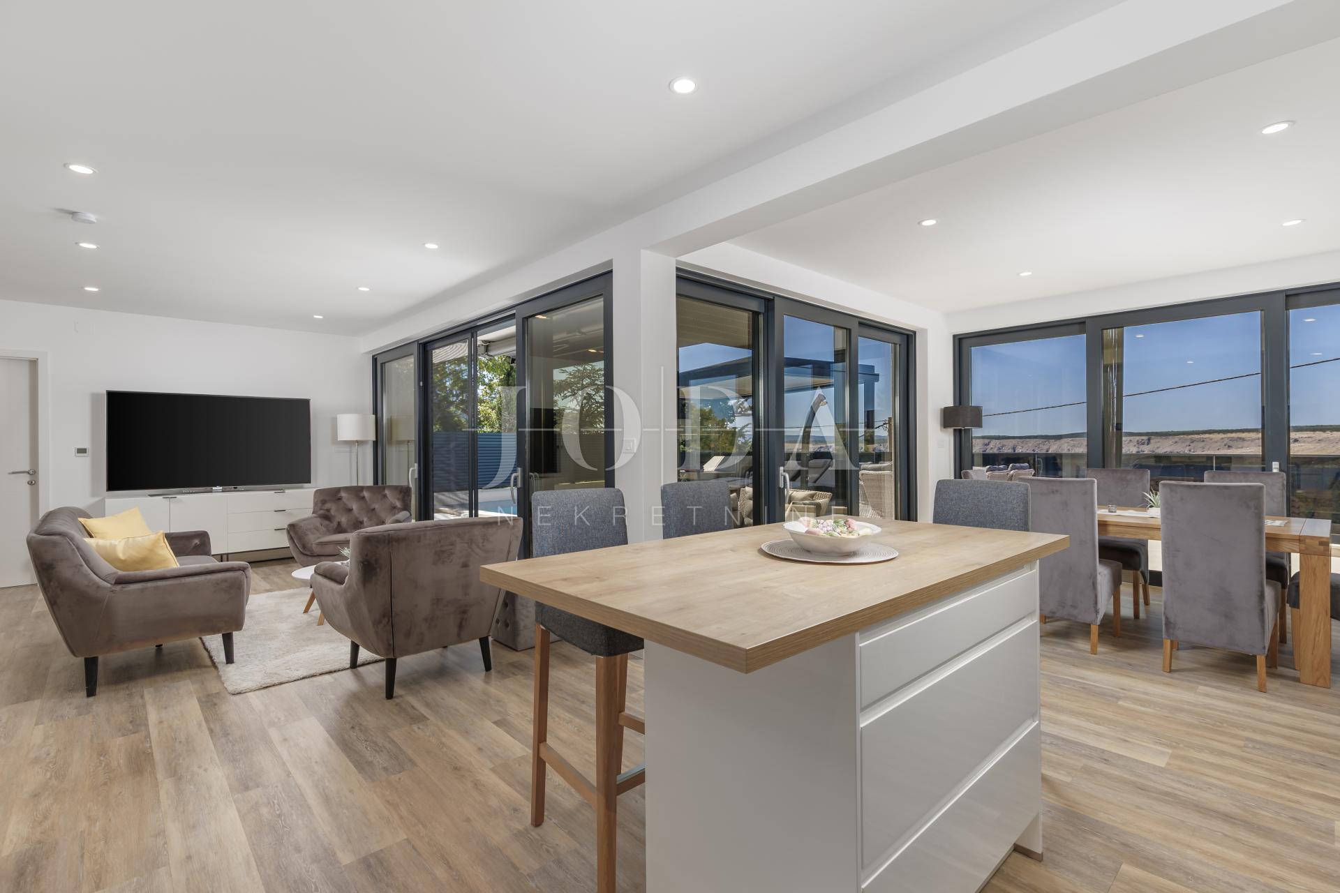 - Otevřený obývací pokoj, kuchyň a jídelna.