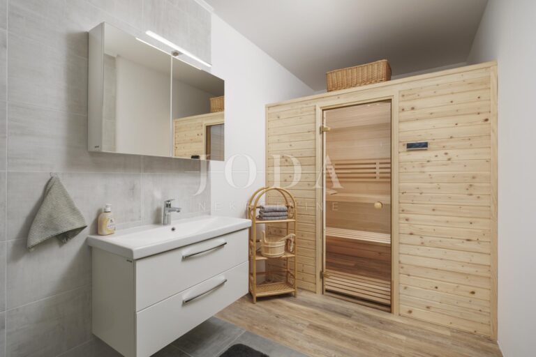 - Suterén: Velká garáž o rozloze 50 m2 a další parkovací místa.