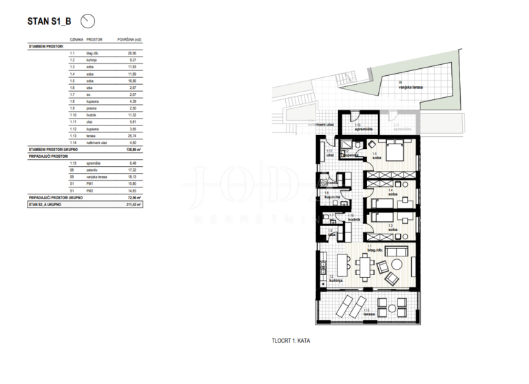Nabízíme k prodeji exkluzivní byt o celkové rozloze 138 m² situovaný v malebné a klidné části Kostreny, obklopené zelení.