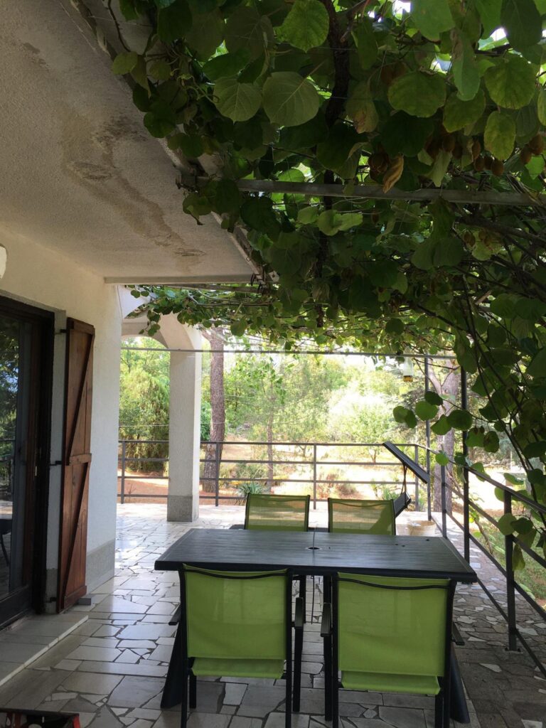• Vstup na velkou terasu pokrytou kiwi stromem s grilem a letní kuchyní