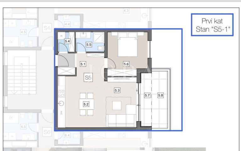K prodeji je jednopokojový byt v prvním patře nové, moderní městské vily.