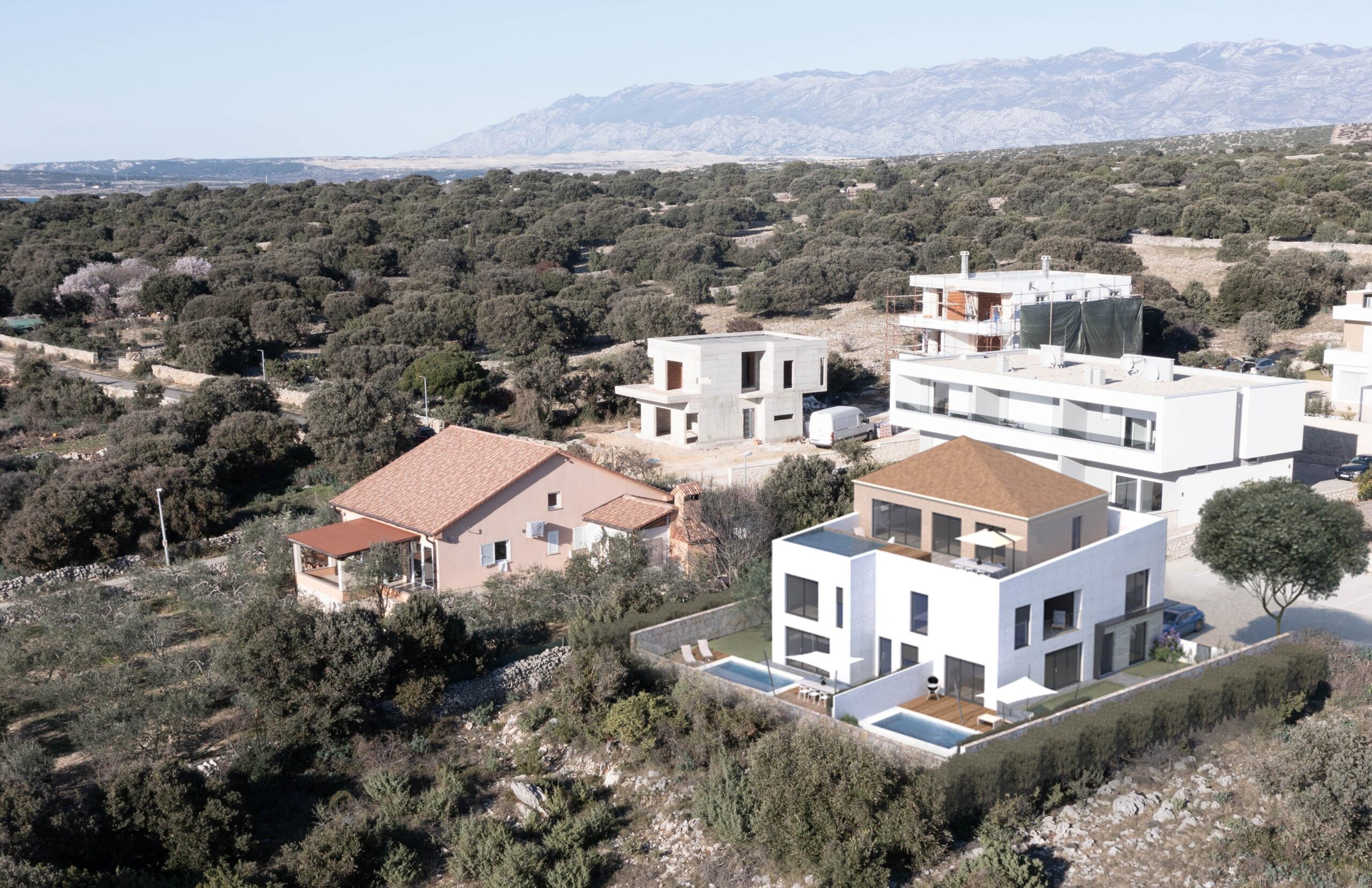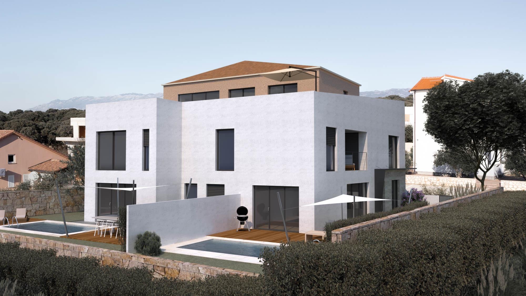 osadě Mandre na ostrově Pag. Budova obsahuje pouze čtyři bytové jednotky, což zaručuje větší soukromí a kvalitu