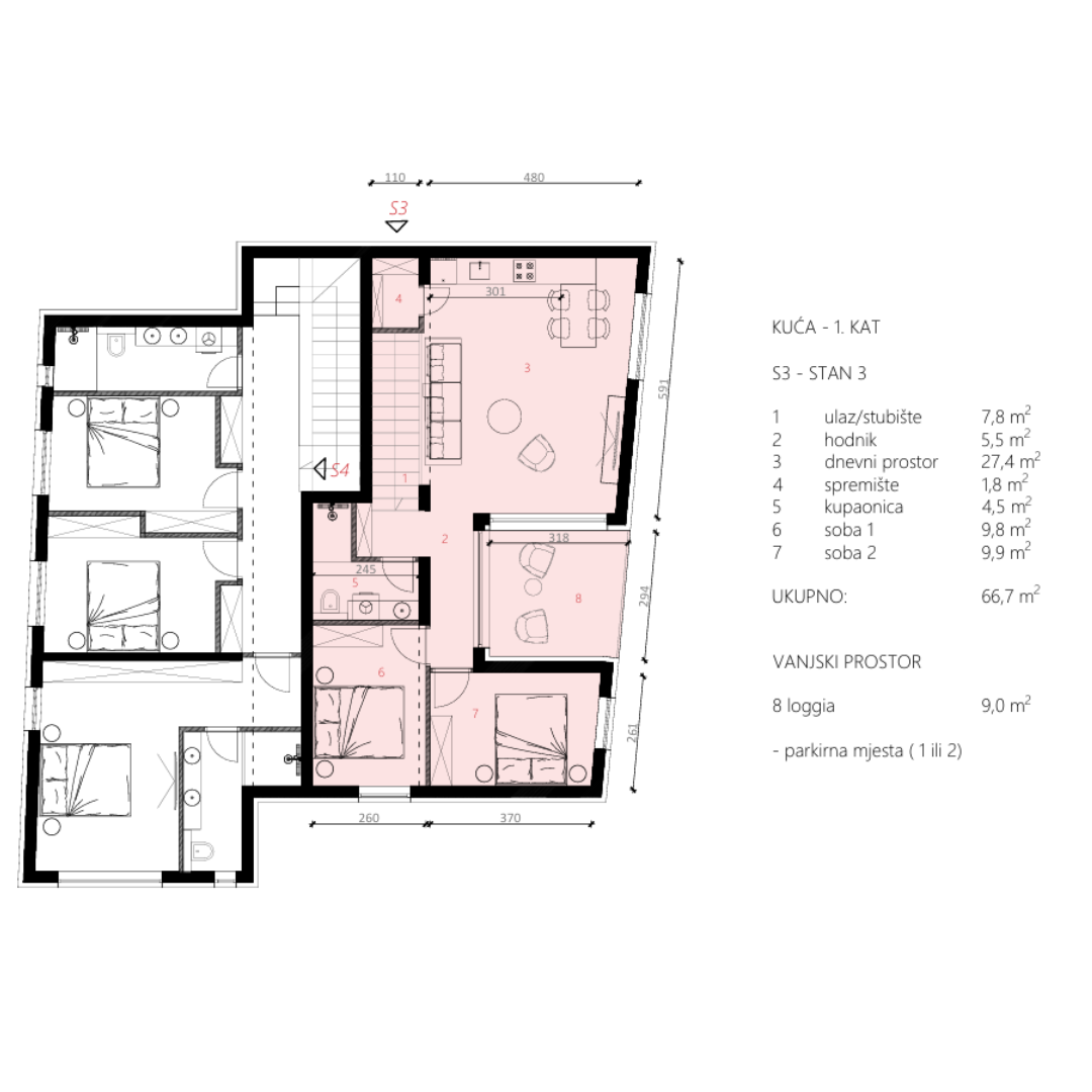 • Celkem: 66,7 m²