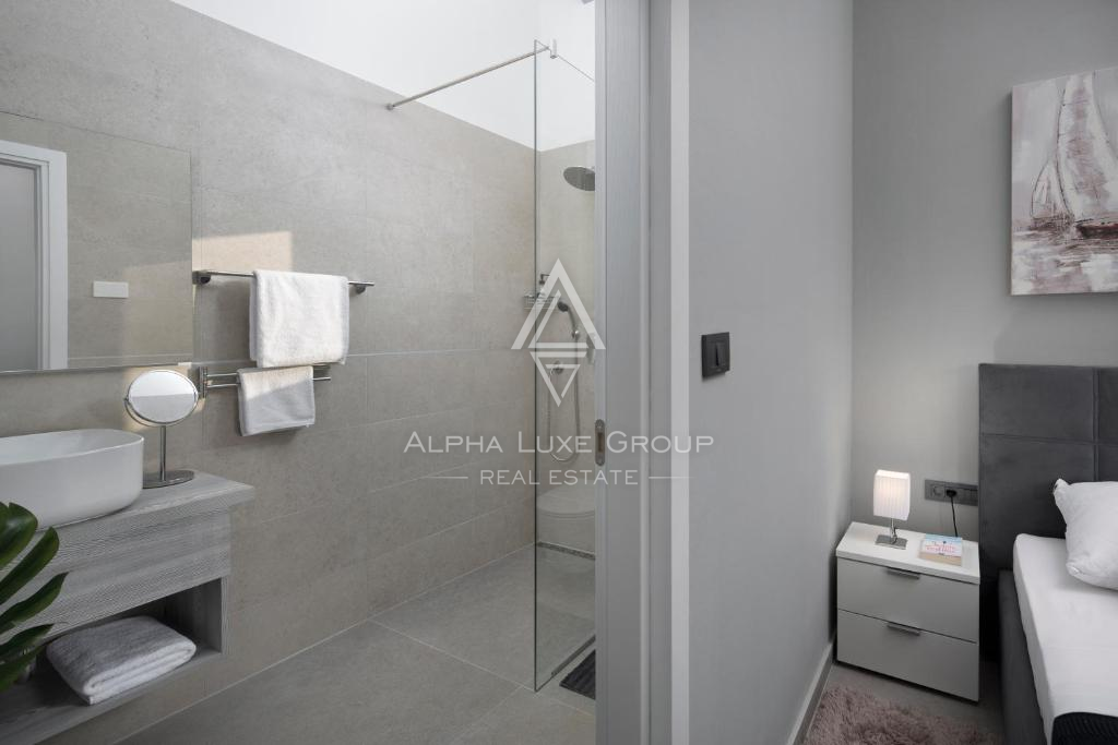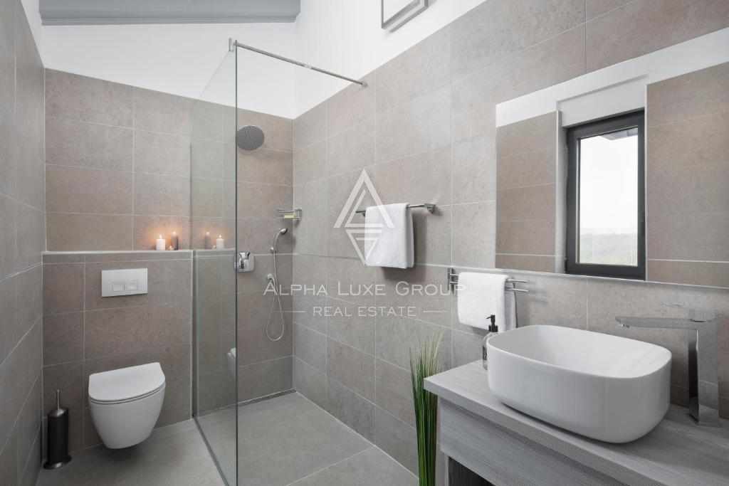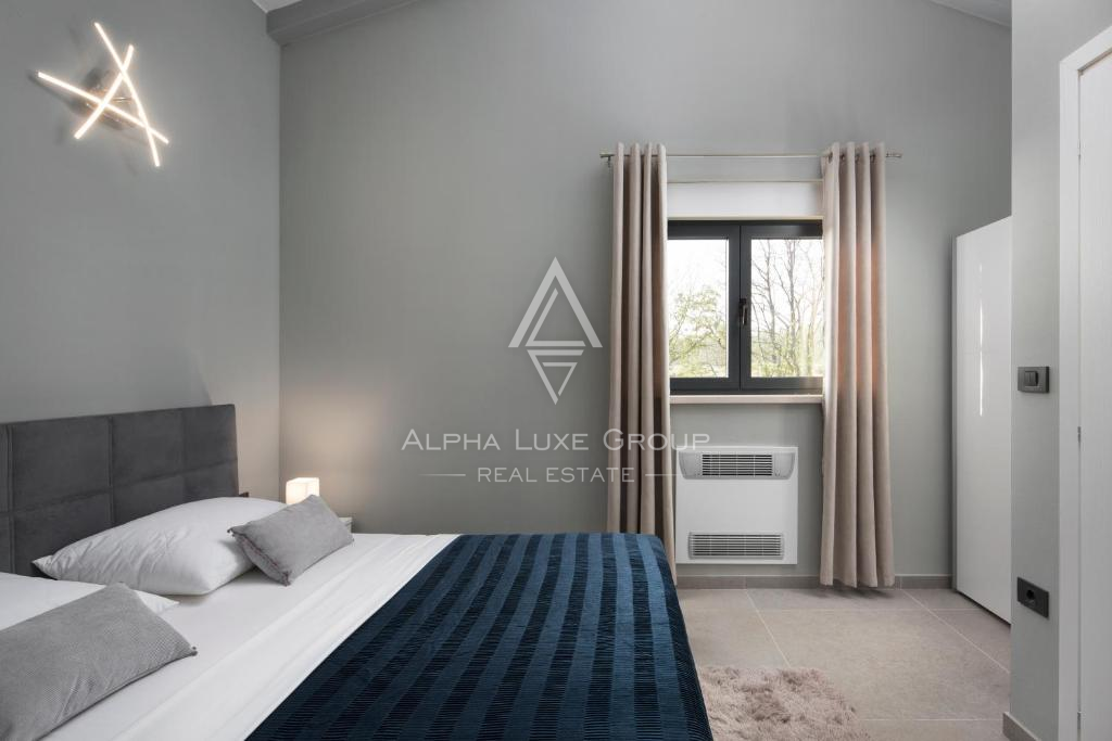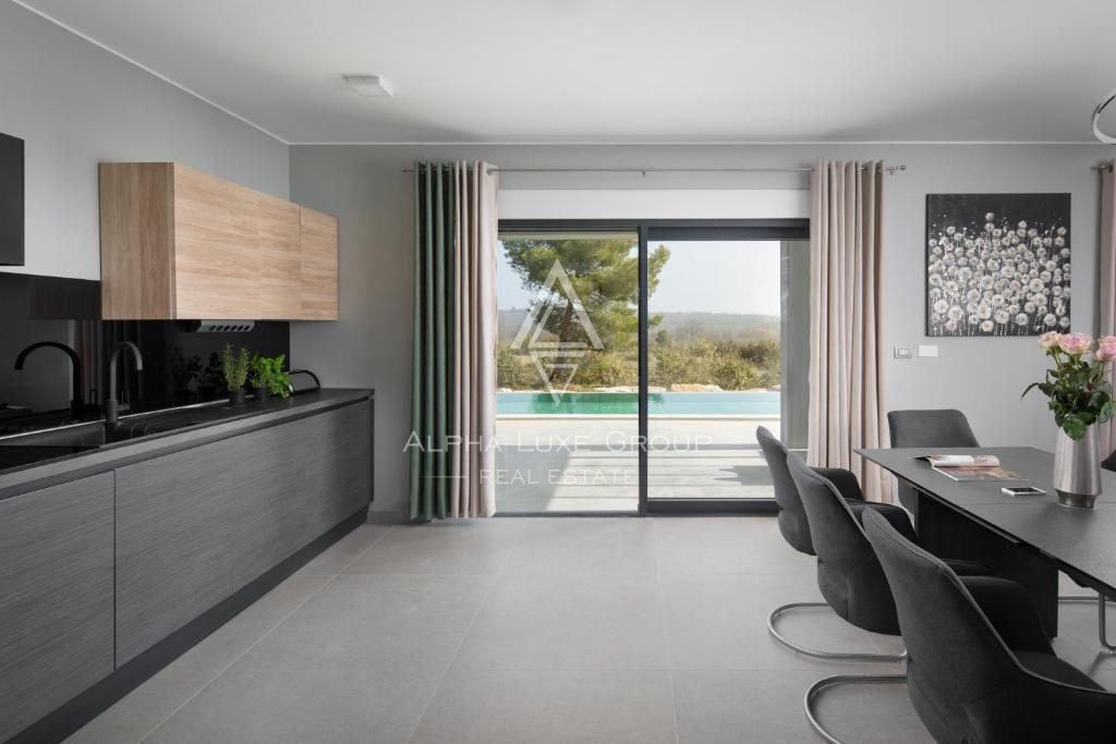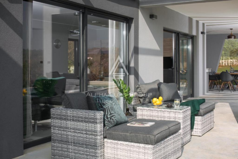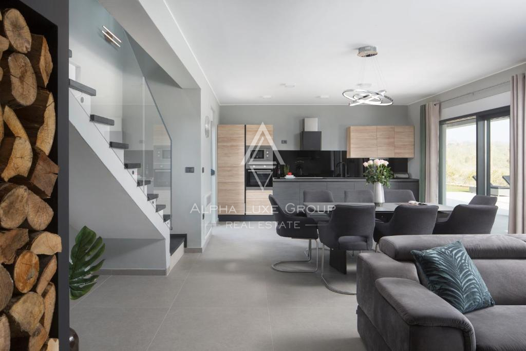 Tato moderní vila se nachází v klidném prostředí blízko historického města Vodnjan a nabízí elegantní spojení současné architektury, pohodlí a soukromí. Nemovitost se rozkládá na dvou podlažích a je navržena tak, aby dokonale ladila s okolní přírodou, čímž vytváří plynulý přechod mezi interiérem a exteriérem. Vysoce kvalitní stavba a promyšlené dispoziční řešení zajišťují dlouhodobé a komfortní bydlení.