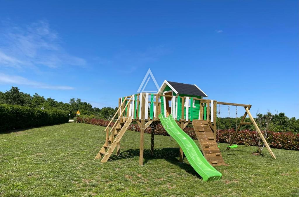 Krásně upravená a oplocená zahrada poskytuje naprosté soukromí a doplňuje ji působivý přelivový bazén o velikosti 78 m² se sluneční terasou. Vila je obklopena zelení a chráněna před ruchem města, ale zároveň se nachází v blízkosti všech důležitých služeb i živých istrijských měst.