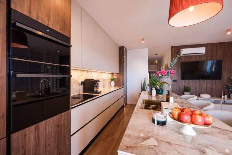 Penthouse ve Višnjiku – 3 ložnice, 110 m², plně zařízený, 2 garážová stání, výtah