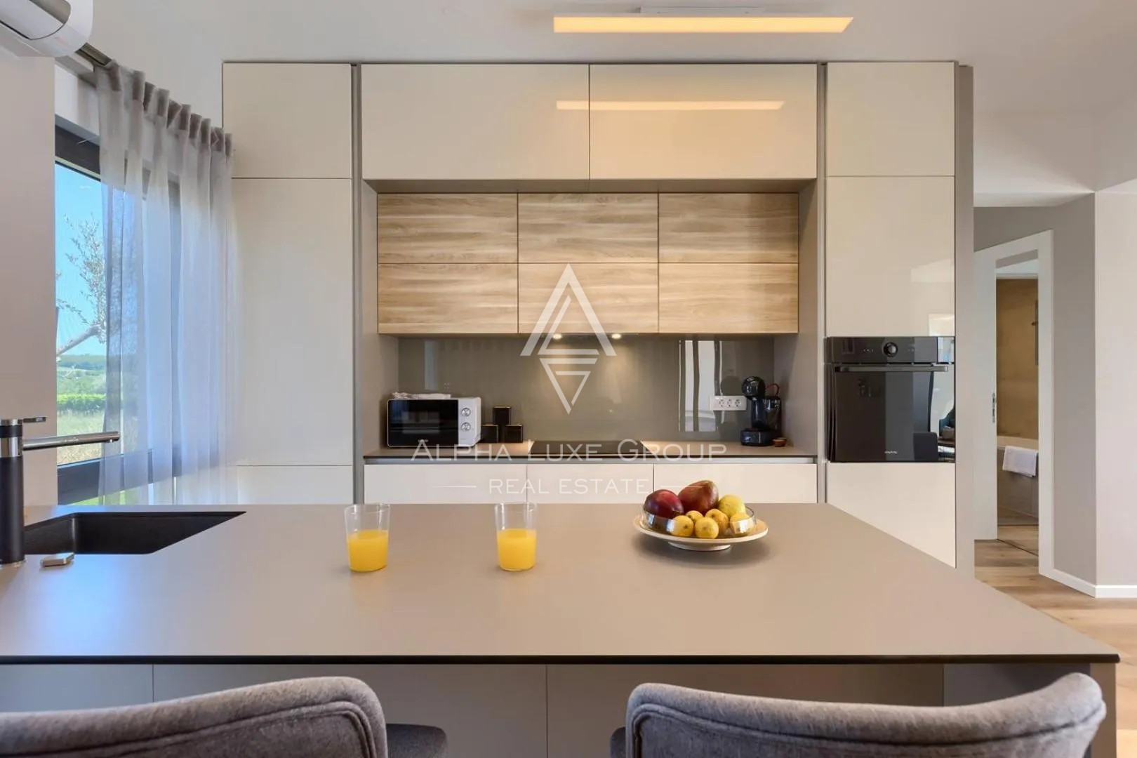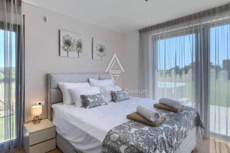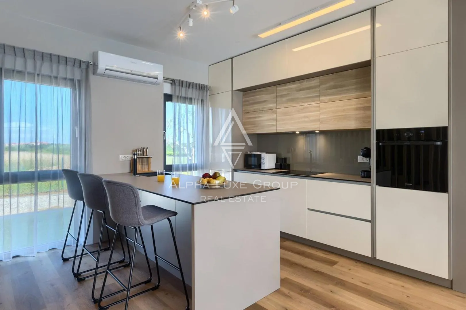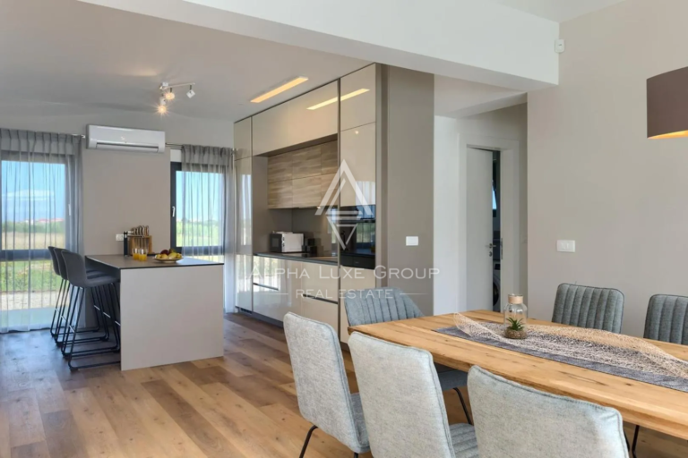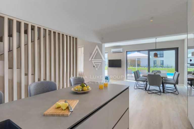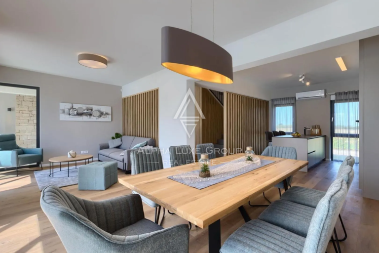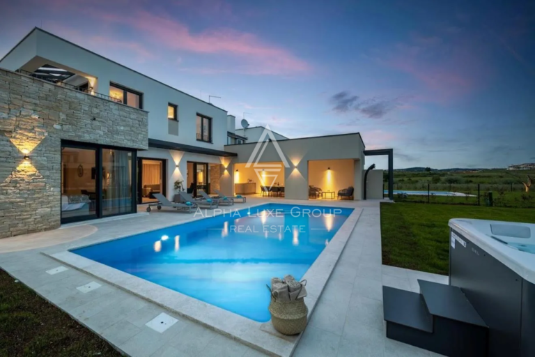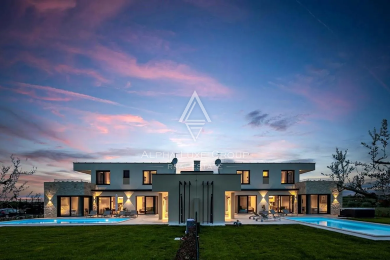 Nachází se v jedné z nejžádanějších částí Brtonigly, tato moderní vila nabízí sofistikovanou kombinaci současného designu, výhledu na moře a naprostého soukromí. S 274 m² obytné plochy a 890 m² upravené zahrady poskytuje nemovitost výjimečné pohodlí a je ideální jak pro rodinné bydlení, tak jako vysoce kvalitní investice.