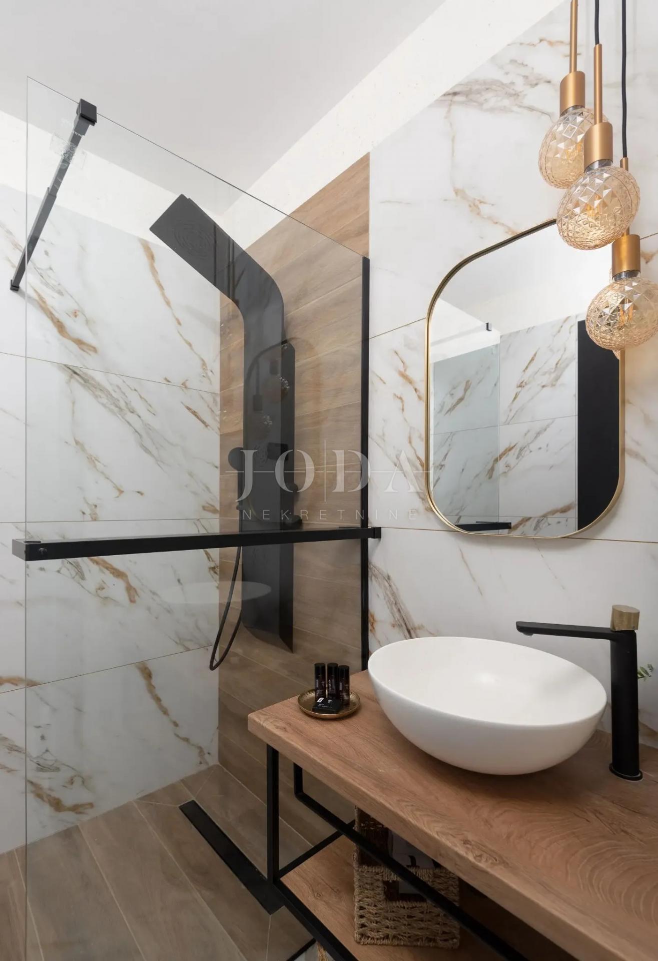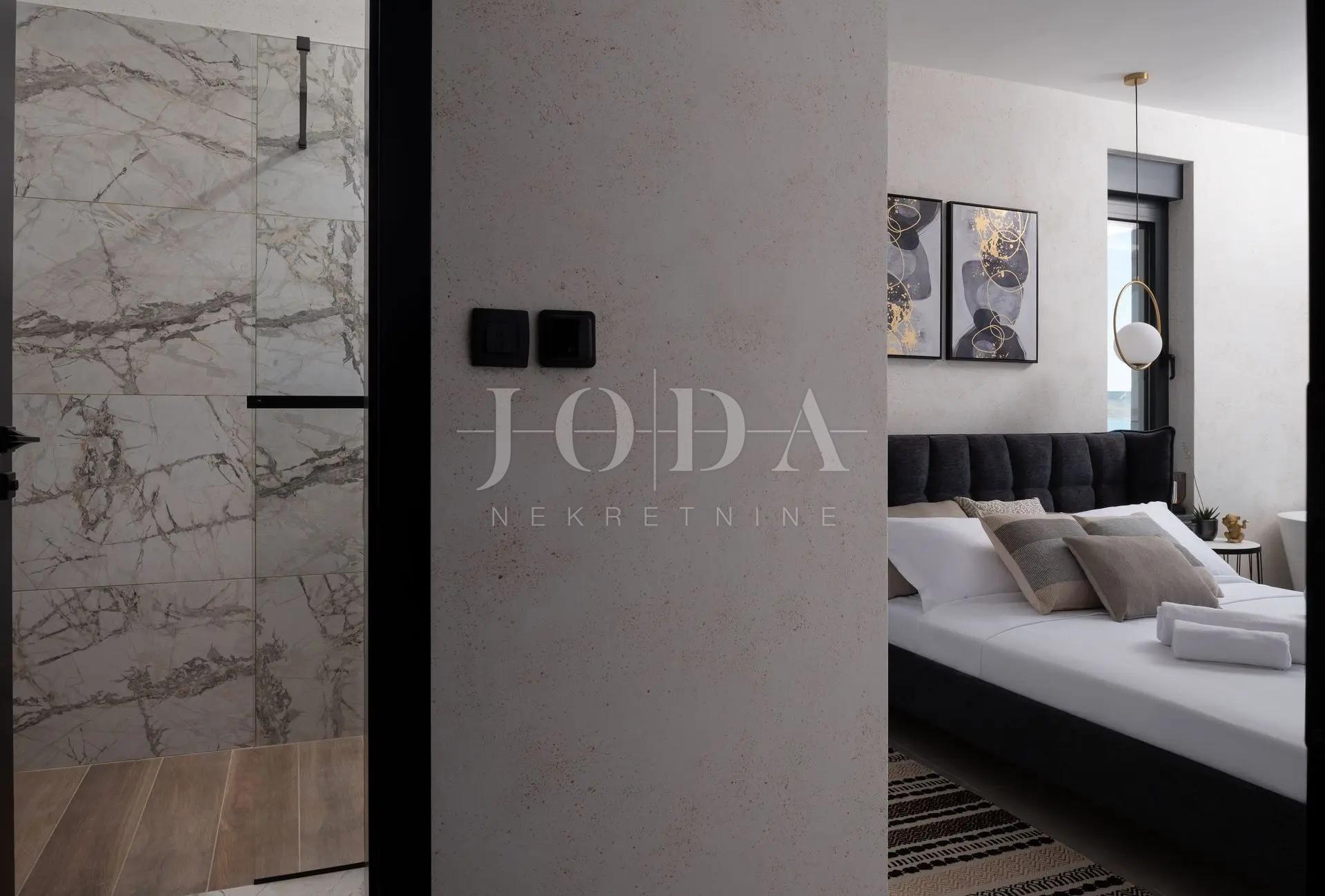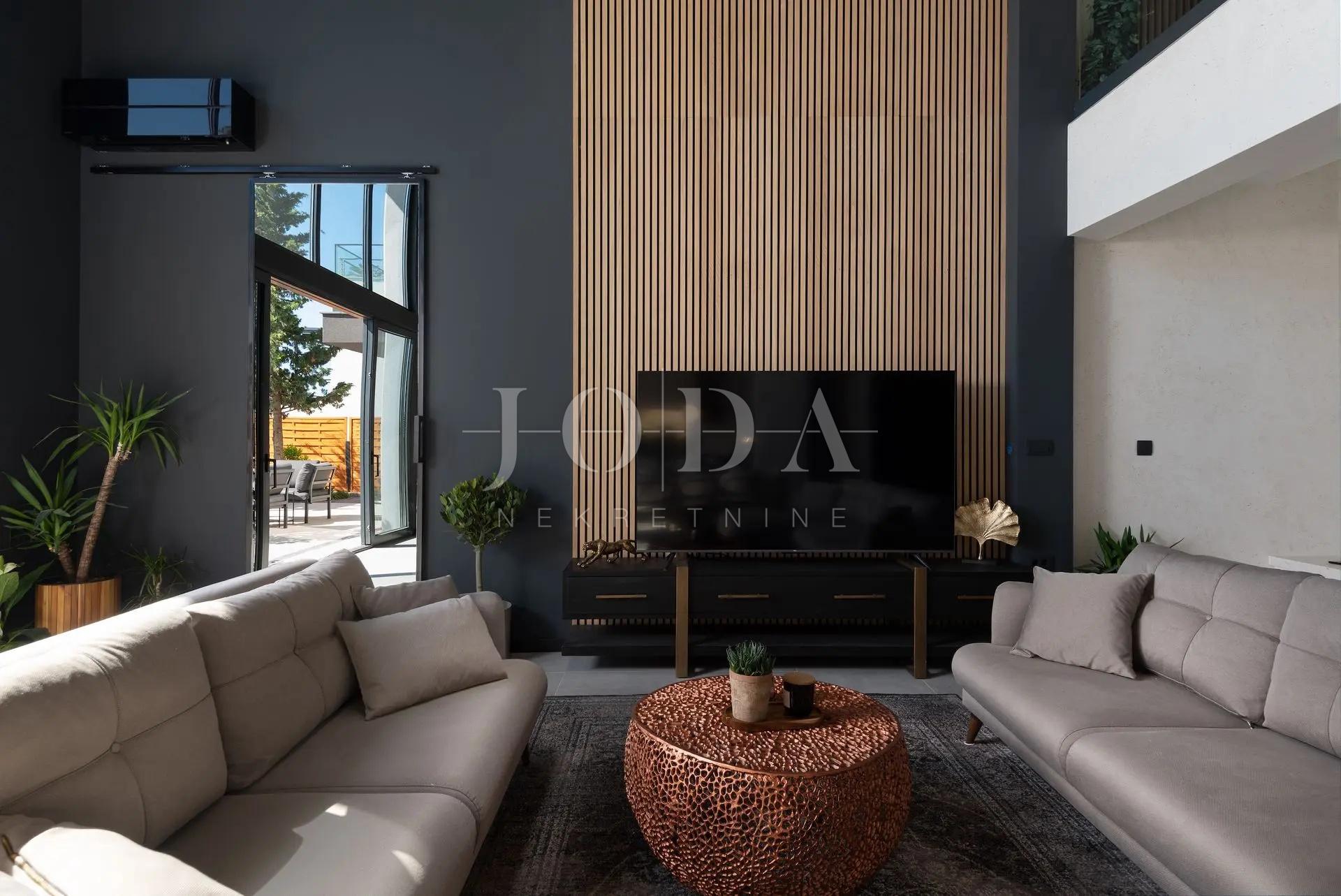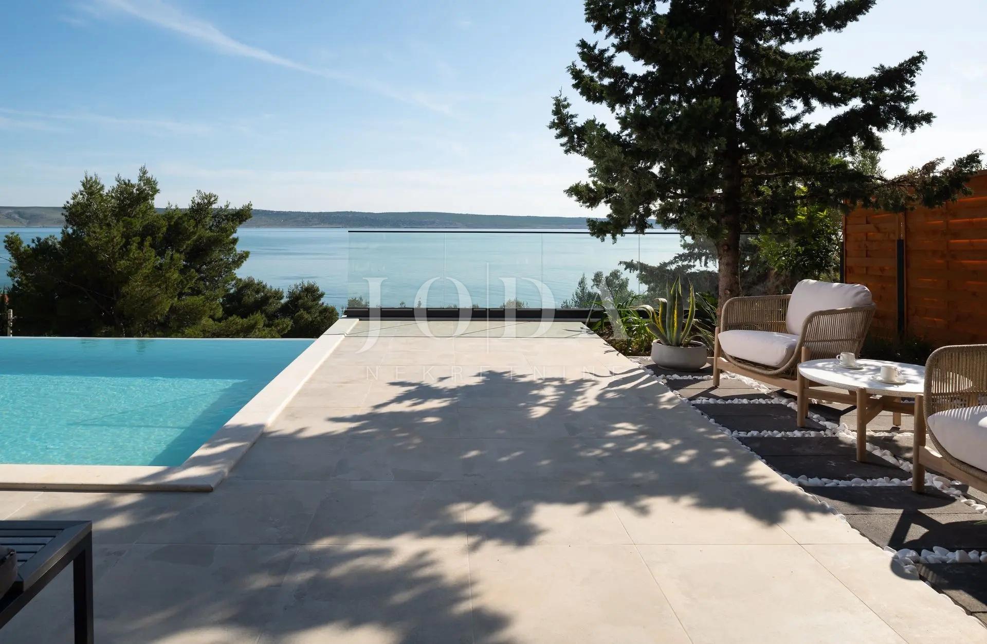K prodeji je exkluzivní vila s unikátním designem, rozkládající se na třech podlažích s celkovou obytnou plochou 250 m². Tato elegantní nemovitost kombinuje moderní luxus a sofistikovanost a každý pokoj vyzařuje styl a pohodlí. Vila nabízí nádherný výhled na Jaderské moře díky velkým proskleným plochám a prostorným balkonům.