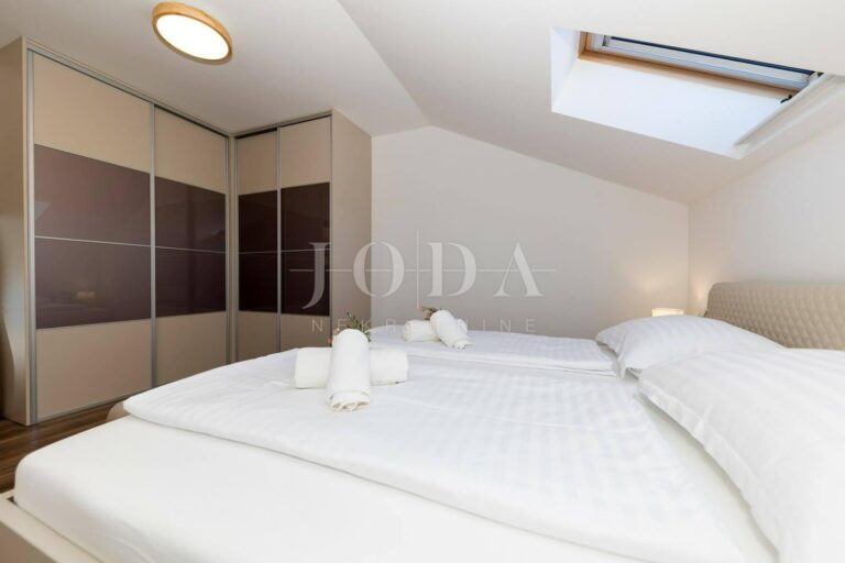 V klidné části Jadranova se prodává moderní a prostorný dvoupatrový byt, ideální pro kupující, kteří hledají pohodlí, funkčnost a otevřený výhled na moře.