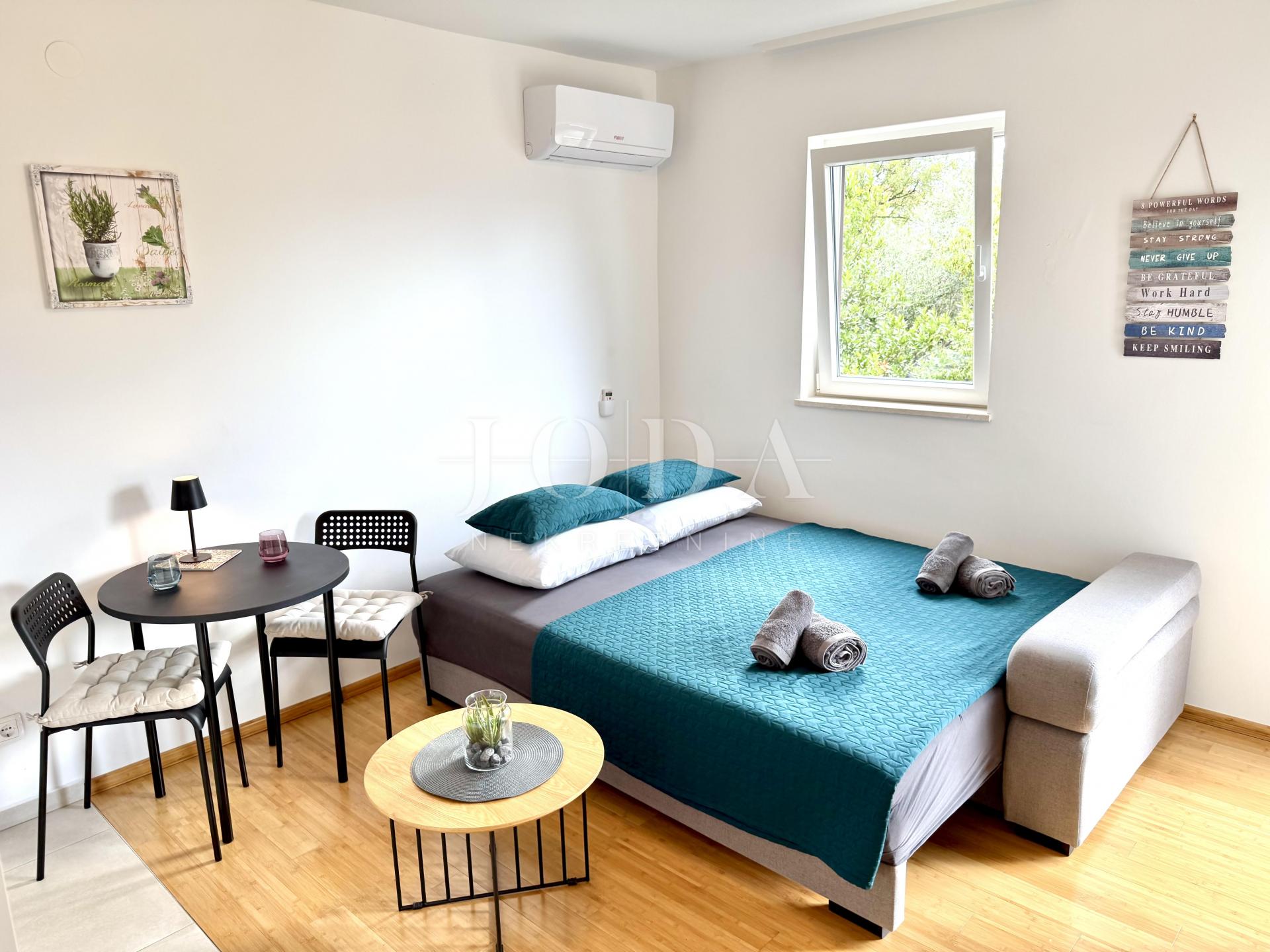 Nabízíme k prodeji krásně zařízený studiový apartmán v Njivicích. Jedná se o ideální příležitost pro ty, kteří hledají komfortní bydlení nebo investici v žádané lokalitě.