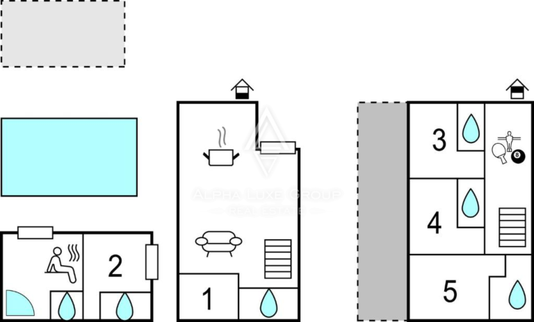 Dům je rozdělen do dvou podlaží a poskytuje prostorné interiéry vhodné pro celoroční bydlení nebo jako luxusní turistická investice.