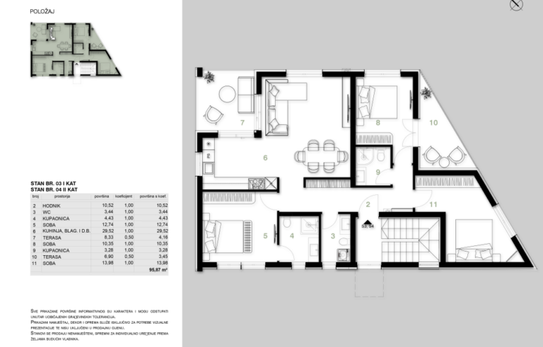 - Toaleta: 3,44 m²