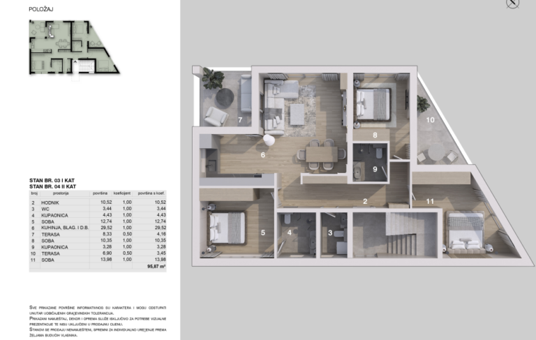 Na prodej je prostorný a moderně navržený penthouse, který se nachází ve druhém patře luxusní novostavby v klidné části Njivic na ostrově Krk, pouhých 400 metrů od moře a udržovaných pláží. Tato elegantní novostavba kombinuje moderní architekturu, špičkovou kvalitu zpracování a funkční dispozici, což z ní činí ideální nemovitost pro příjemný pobyt, dovolenou nebo investici.