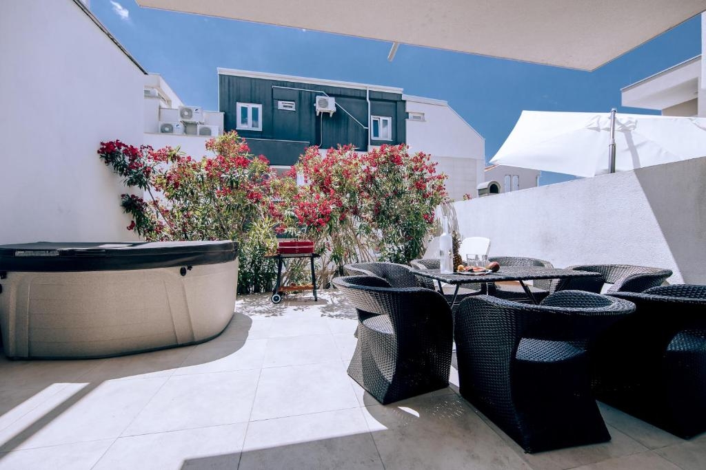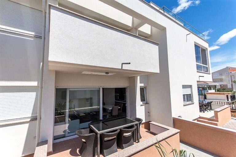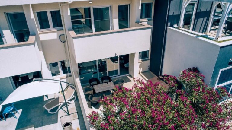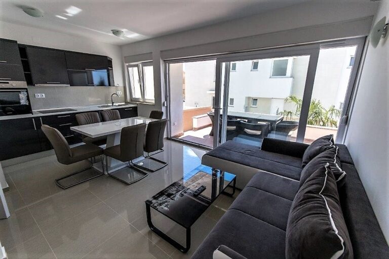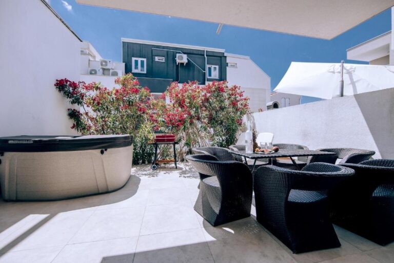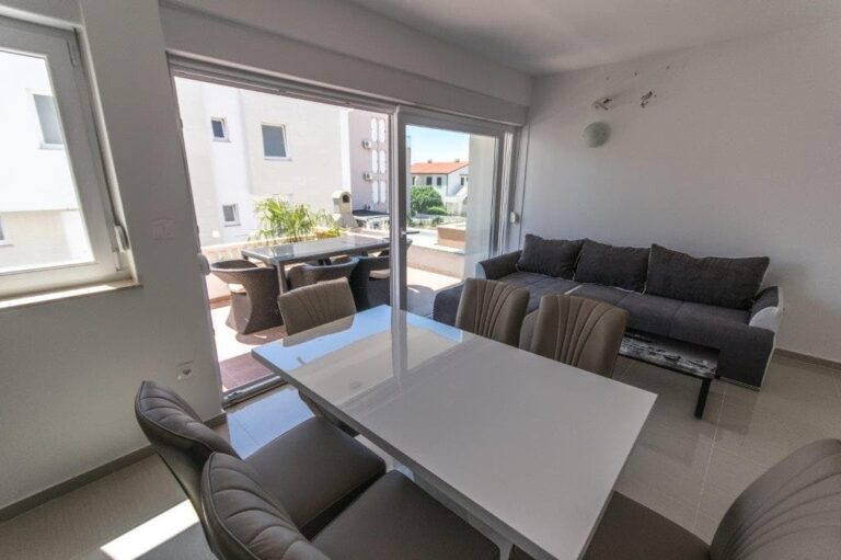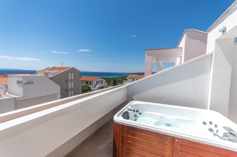APARTMÁN E2 – NOVALJA – PŘÍZEMÍ SE ZAHRADOU, PRVNÍ PATRO A HORNÍ TERASA S VÍŘIVKOU A VÝHLEDEM NA MOŘE – VÝHODNÁ INVESTICE