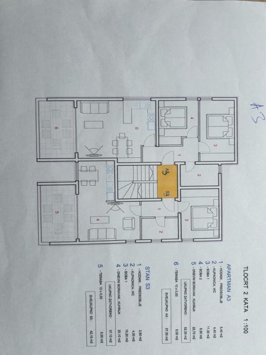 K prodeji je kompletně zařízený a ihned k nastěhování apartmán A3 ve druhém patře novostavby v klidné části Novalje, pouhých 300 metrů od moře.