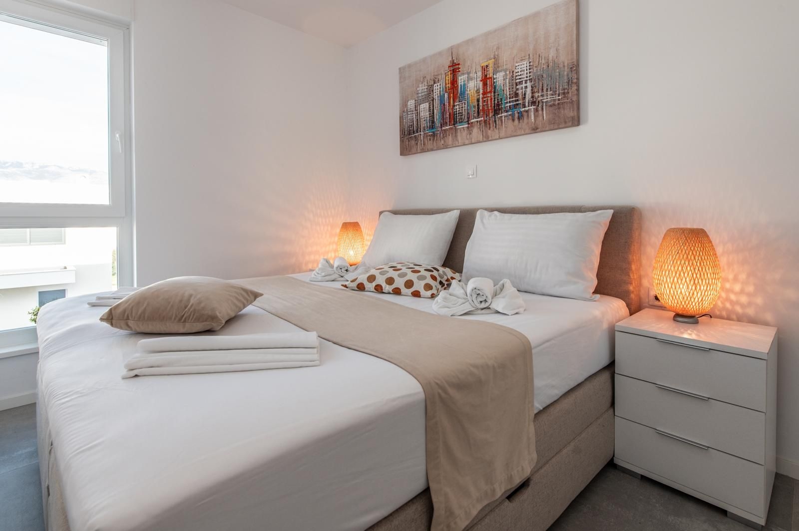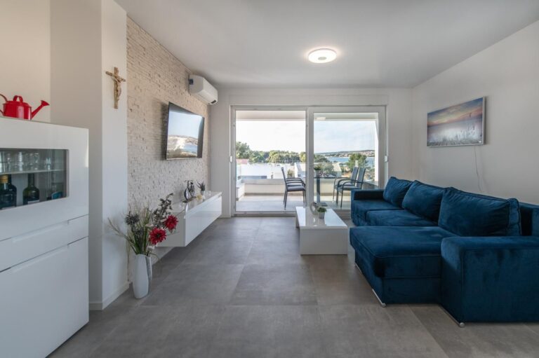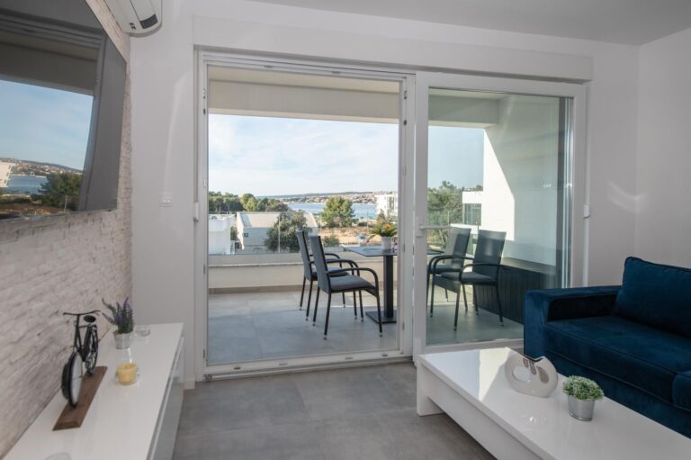 Novalja: Luxusní 2+kk s výhledem na moře, zařízený, 300m od pláže, 62m2