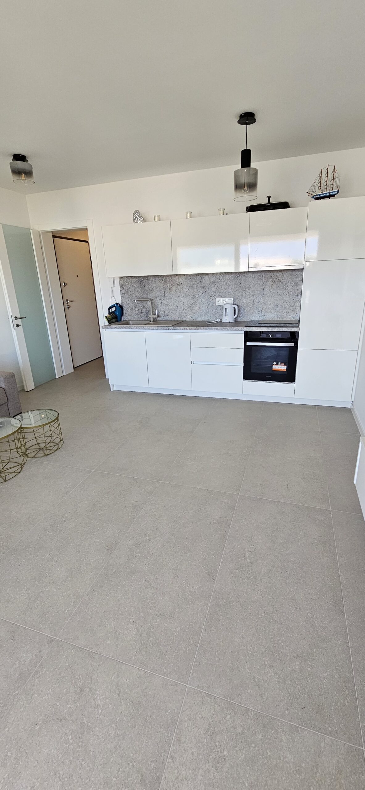 Plně zařízený apartmán ve 2. patře novostavby (budova postavena v roce 2023), připravený k okamžitému nastěhování.