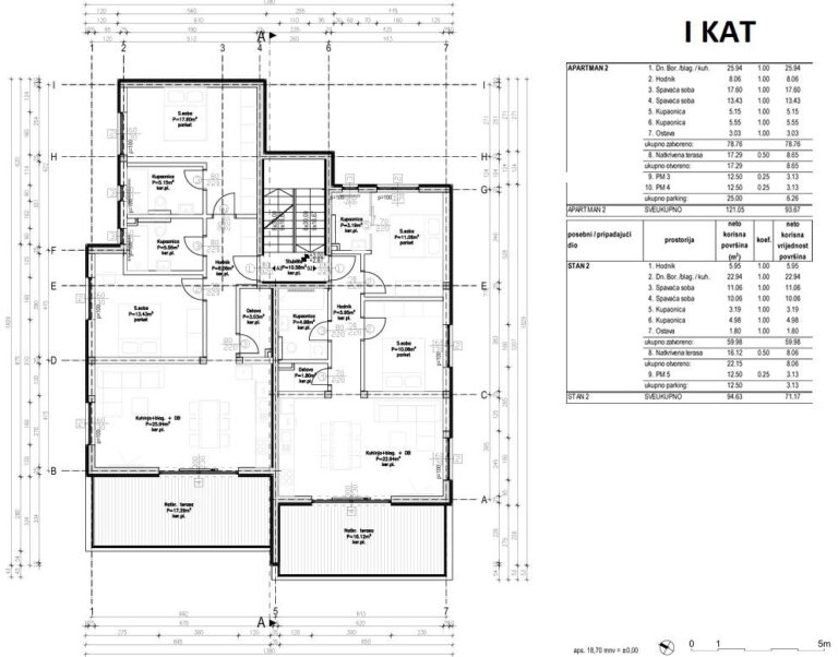 - Hrubá plocha (s terasou a parkovacími místy): 121,05 m²
