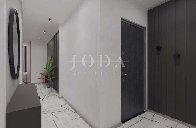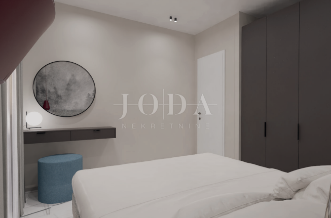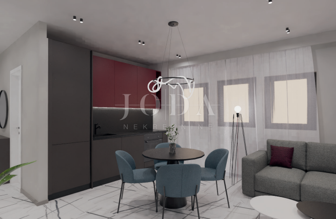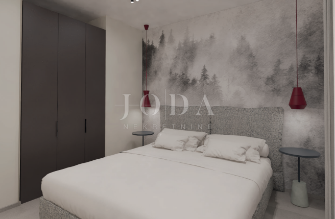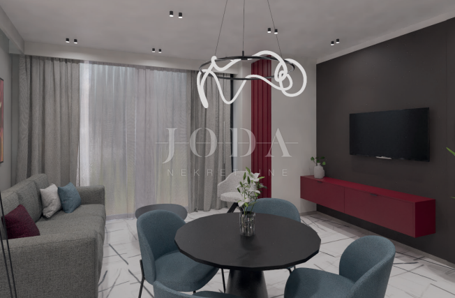 Dvoupokojové apartmány jsou navrženy s ohledem na maximální flexibilitu. Je možné je snadno rozdělit na dvě samostatné jednotky (garsoniéru a jednopokojový apartmán), přičemž každá jednotka má svůj vlastní balkon. Tato vlastnost je činí mimořádně atraktivními pro turistický pronájem, zejména v Novalji, která je známá svou vynikající obsazeností během sezóny.