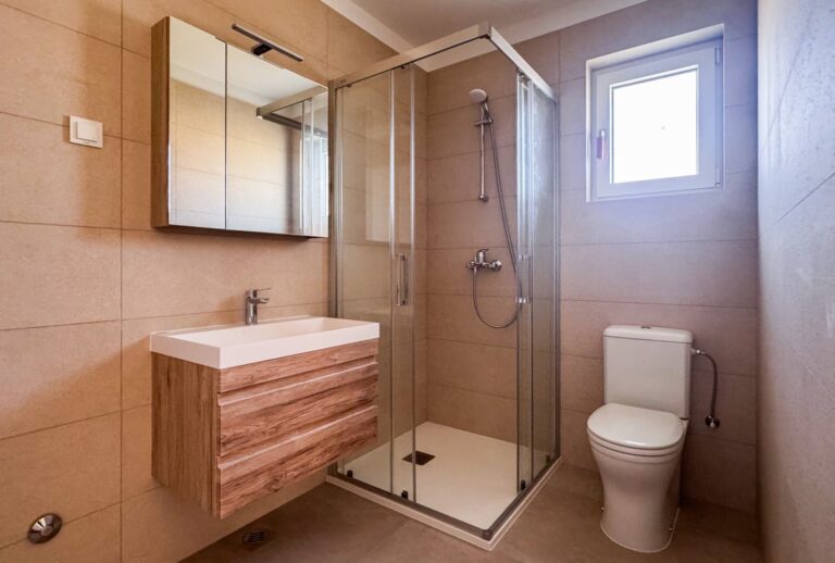 - Podlahy a stěny: španělská keramika a bračský kámen