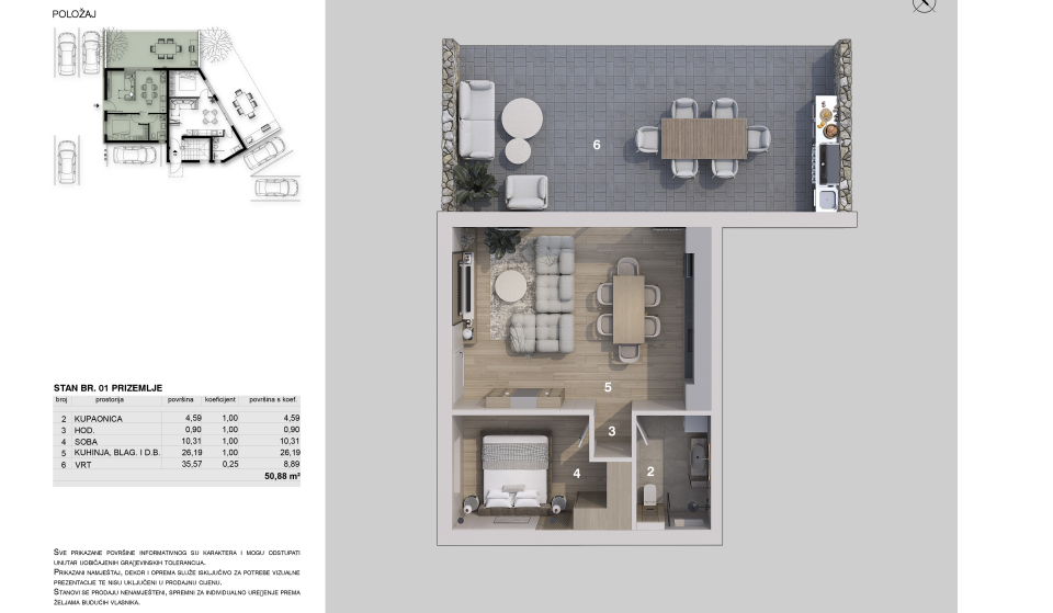 K prodeji je moderní apartmán v přízemí novostavby, která se nachází v klidné části Njivic na ostrově Krk, pouhých 400 metrů od moře a krásných pláží. Tato elegantní novostavba kombinuje moderní architekturu, vysoce kvalitní materiály a funkční dispozici, ideální pro pohodlný pobyt nebo investici.