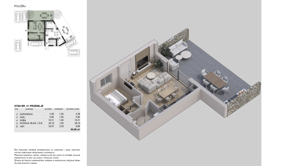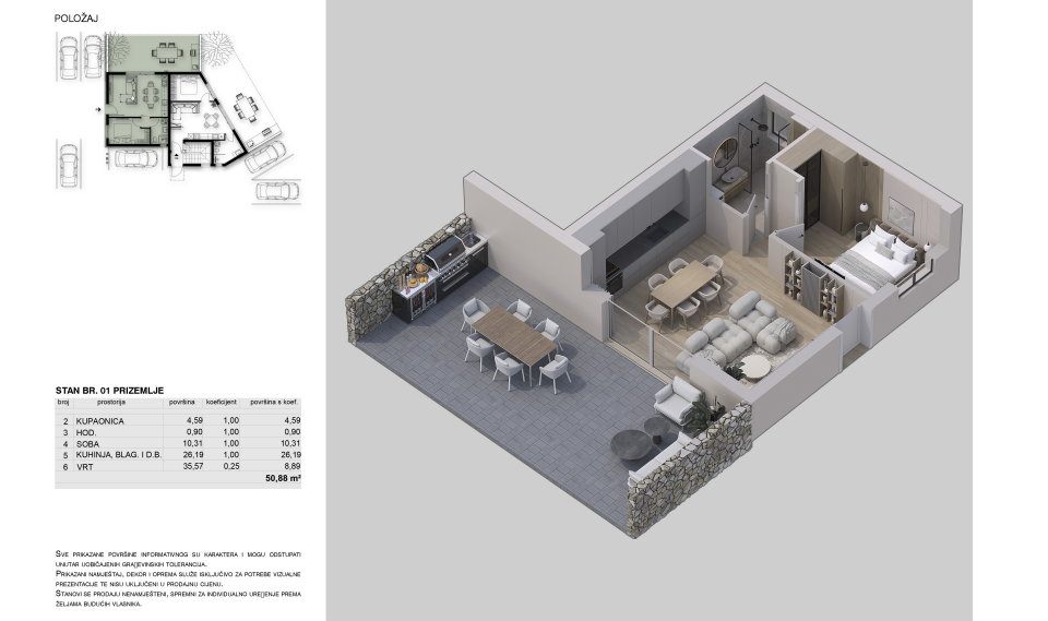 Budova je postavena podle nejvyšších standardů energetické účinnosti a moderního designu. Zahrada nabízí soukromí a prostor pro relaxaci a lokalita v Njivicích poskytuje klid, blízkost moře a rychlý přístup ke všem zařízením – obchodům, restauracím a promenádám.