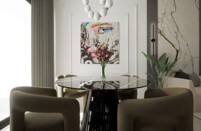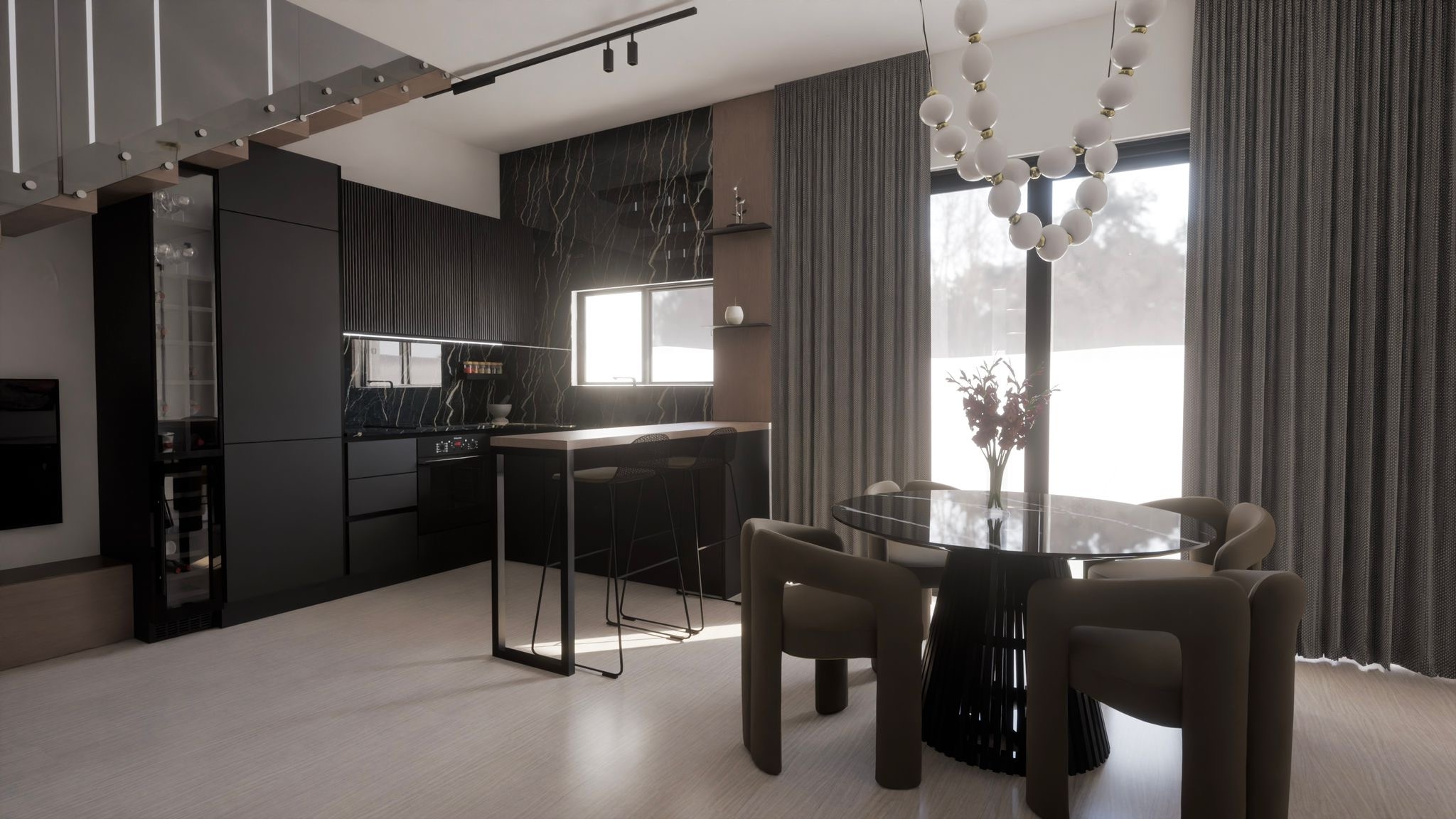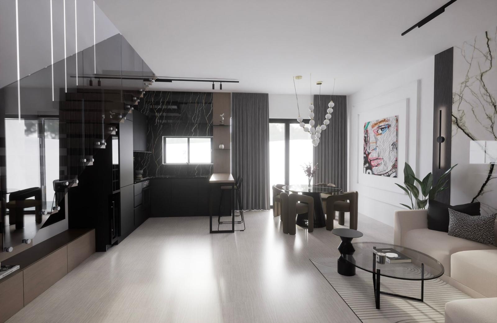 - Otevřený prostor kuchyně, jídelny a obývacího pokoje