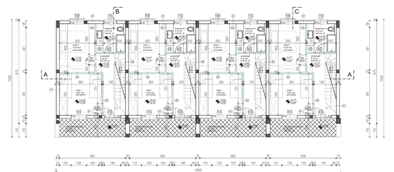 - 2 venkovní parkovací místa (25 m² brutto): výpočet 6,25 m²