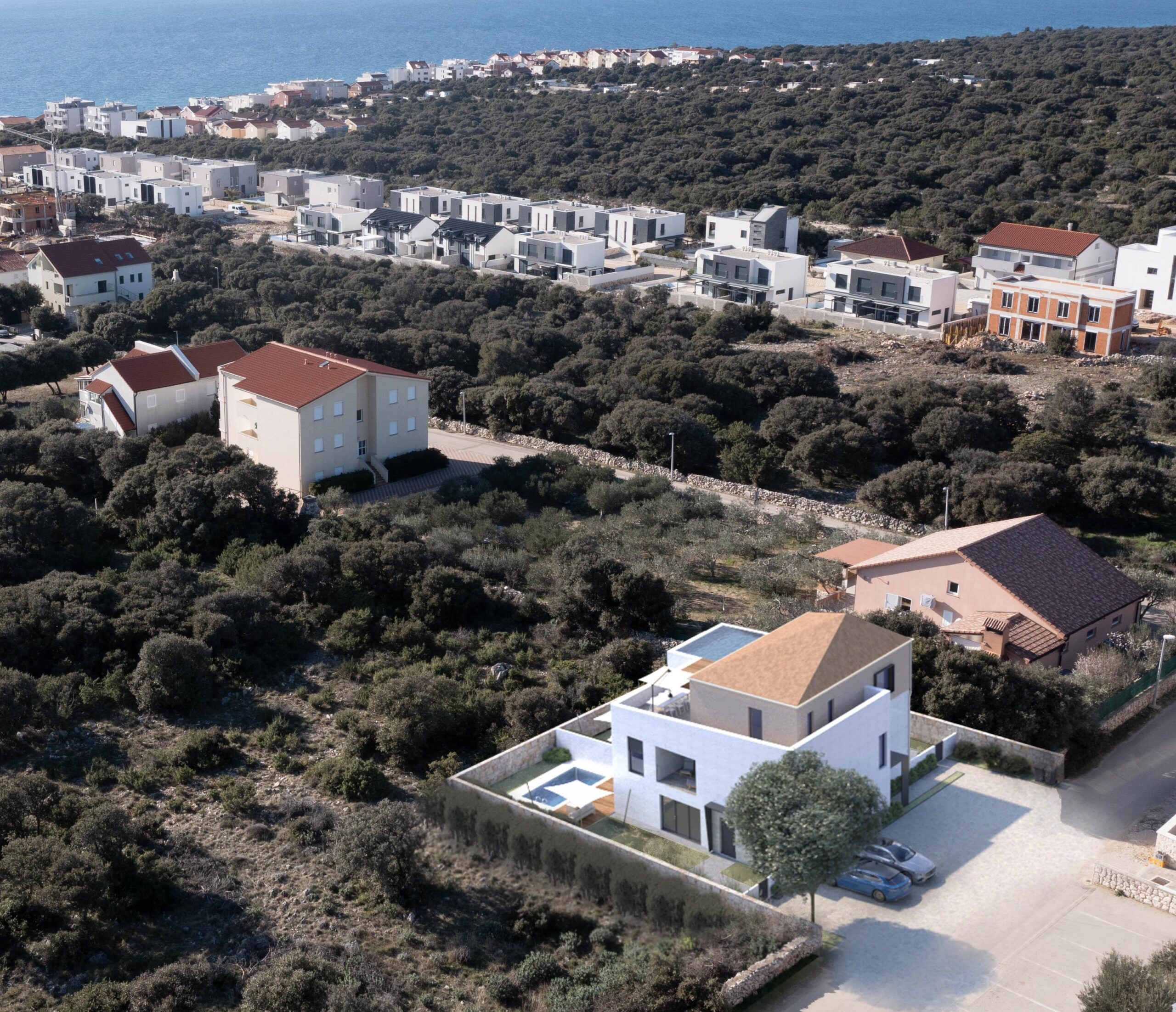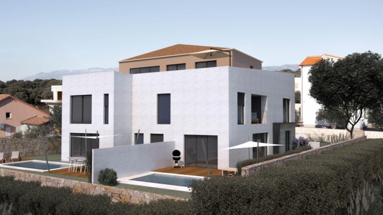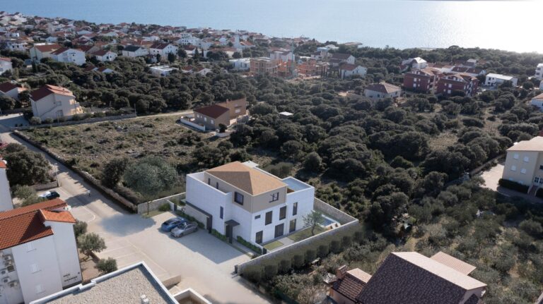 V Mandre na ostrově Pag se prodává unikátní mezonetový apartmán, který se nachází v moderní a exkluzivní novostavbě. Nemovitost je určena pro ty, kteří hledají maximální pohodlí, luxus a úchvatný panoramatický výhled. S privátním nekonečným bazénem o rozloze 17 m² a prostornou terasou o rozloze 59,8 m² nabízí apartmán absolutně vše pro potěšení na nejvyšší úrovni - ať už hledáte domov pro sebe, luxusní chatu nebo luxusní investici k pronájmu.