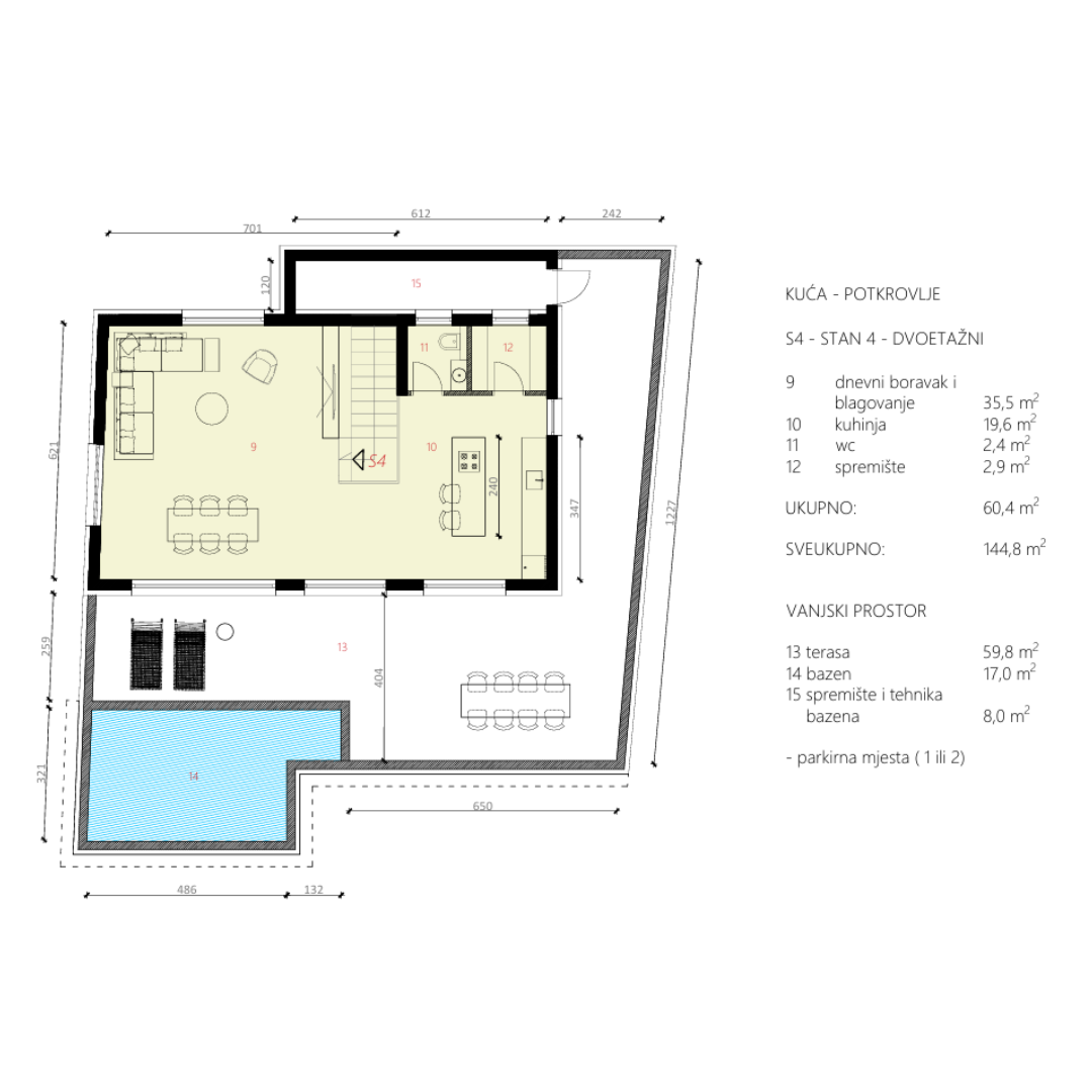 - Terasa: 59,8 m²